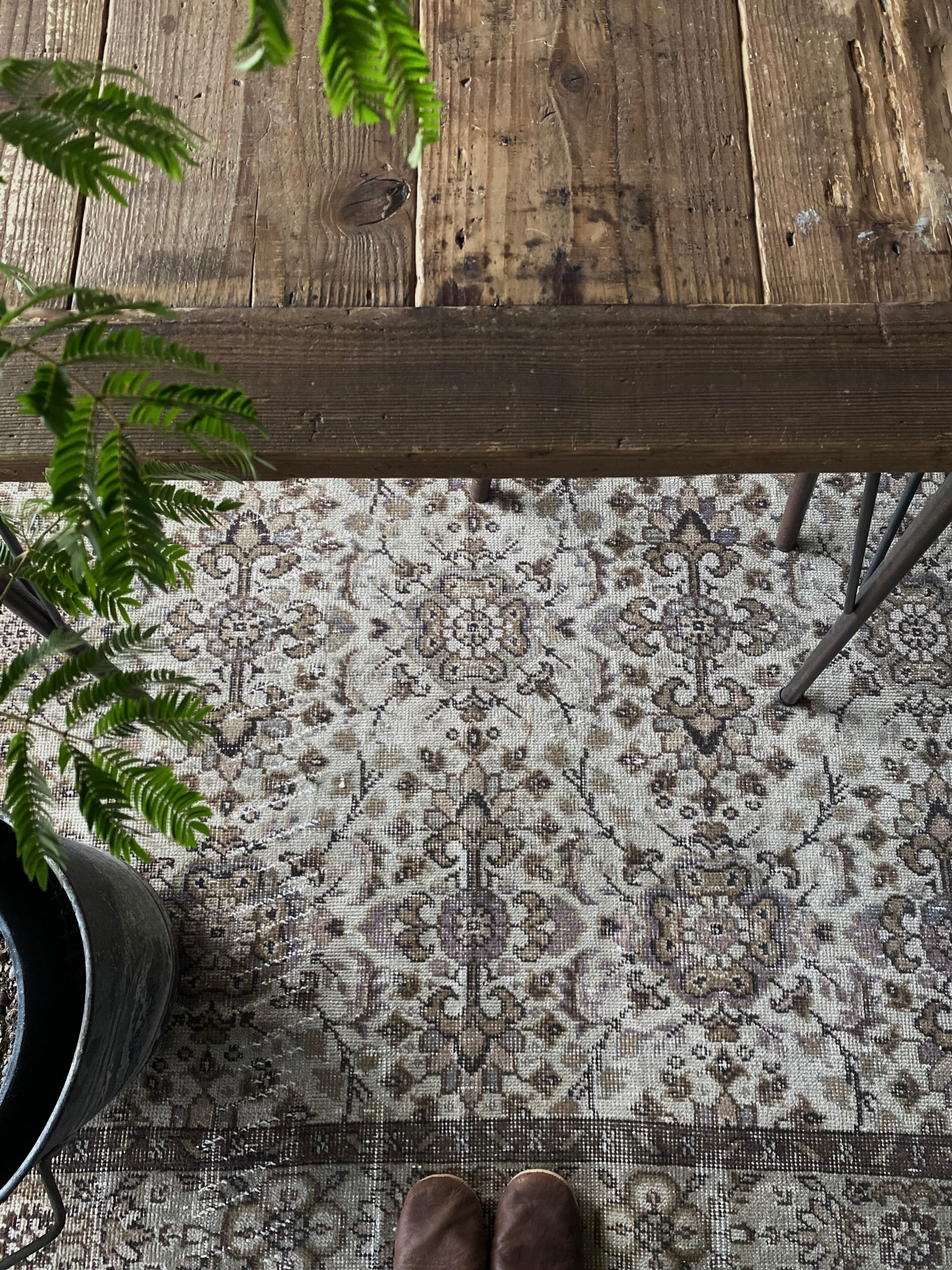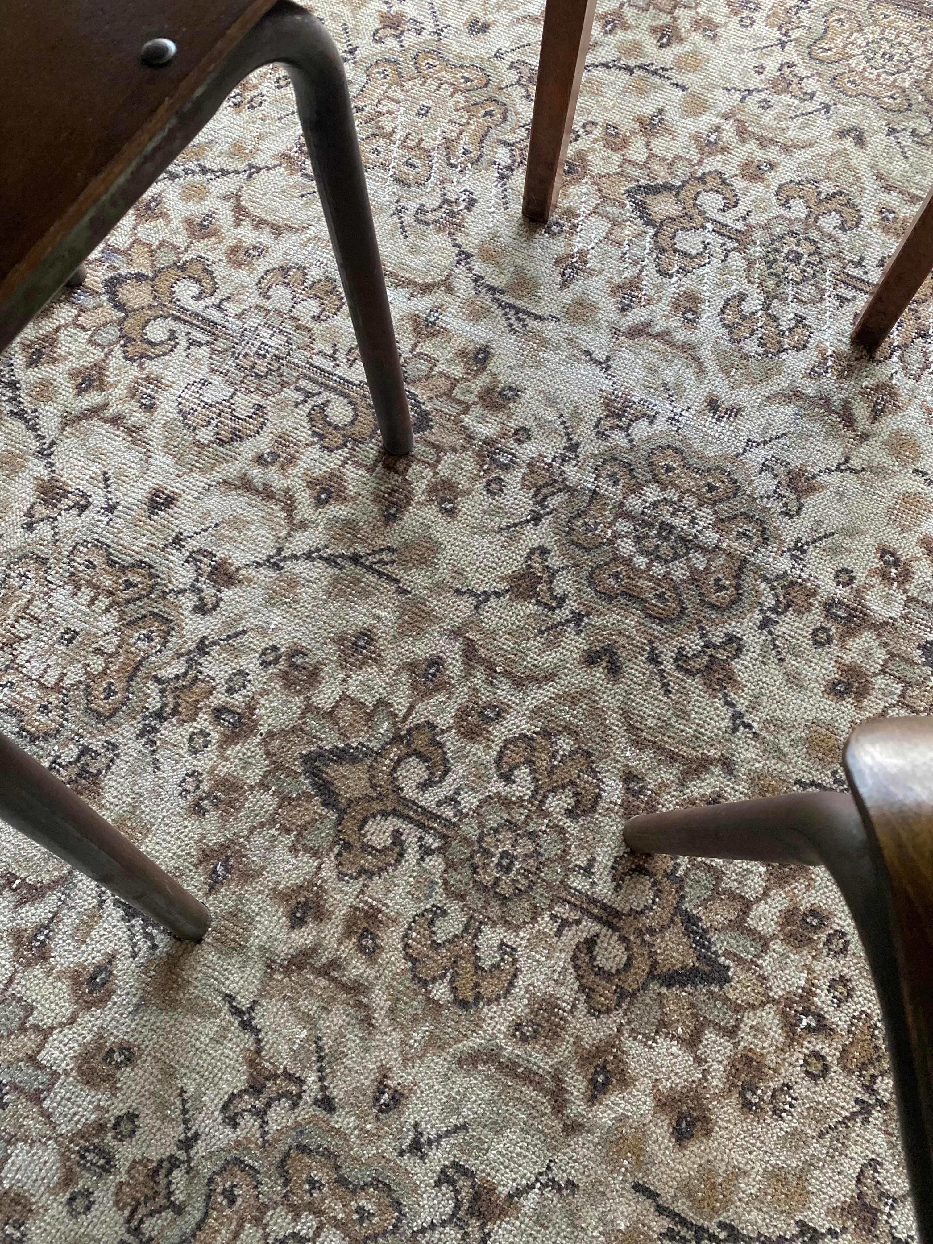 ✔︎手織りのヴィンテージラグの為、撓み、カスレ,糸の飛び出し修復などありますがどれもヴィンテージならではの風合いです。