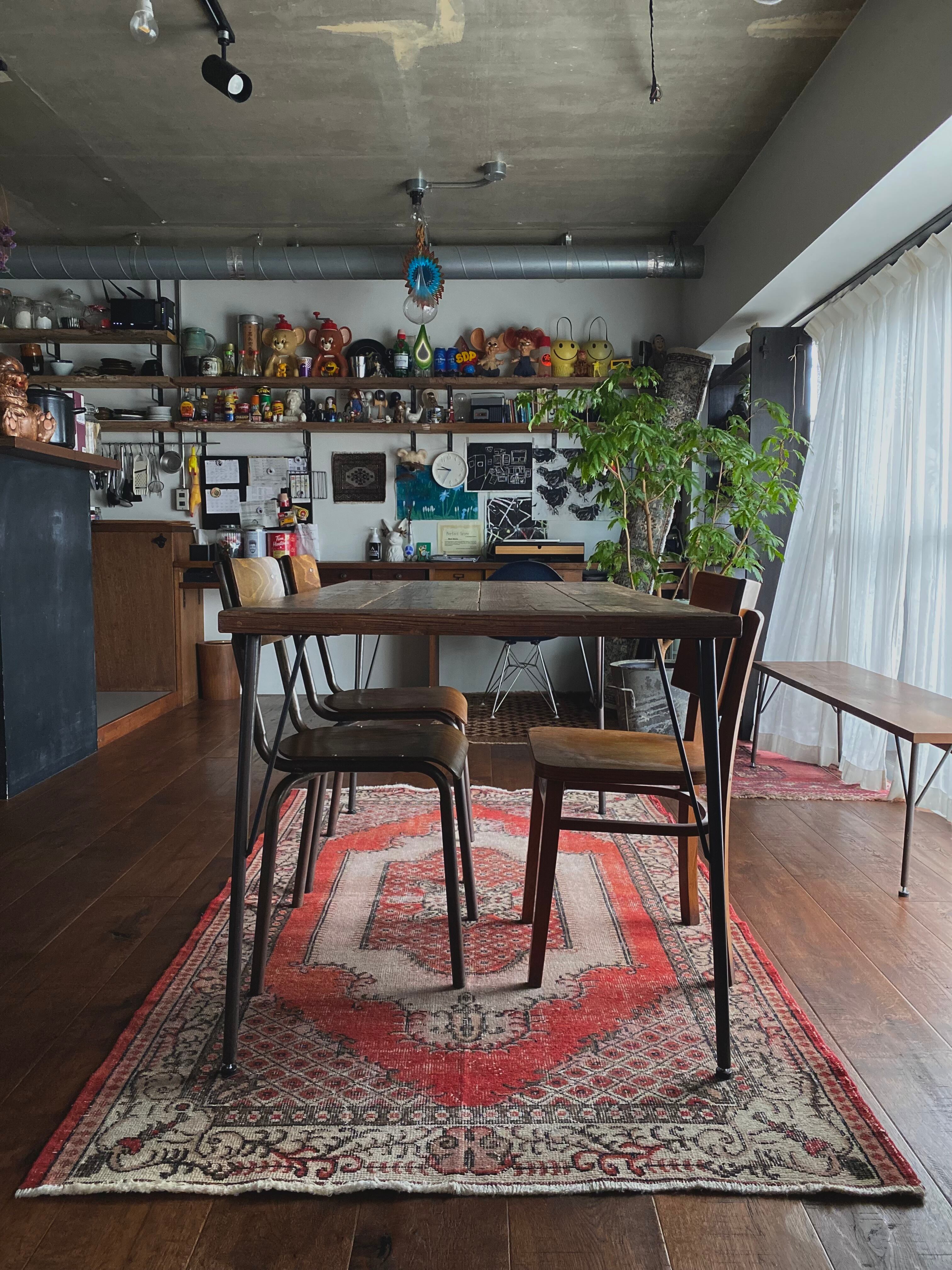 ✔︎手織り、ヴィンテージラグの為、撓み、カスレ、修復跡などございますがどれもヴィンテージならではの風合いとして扱っております。