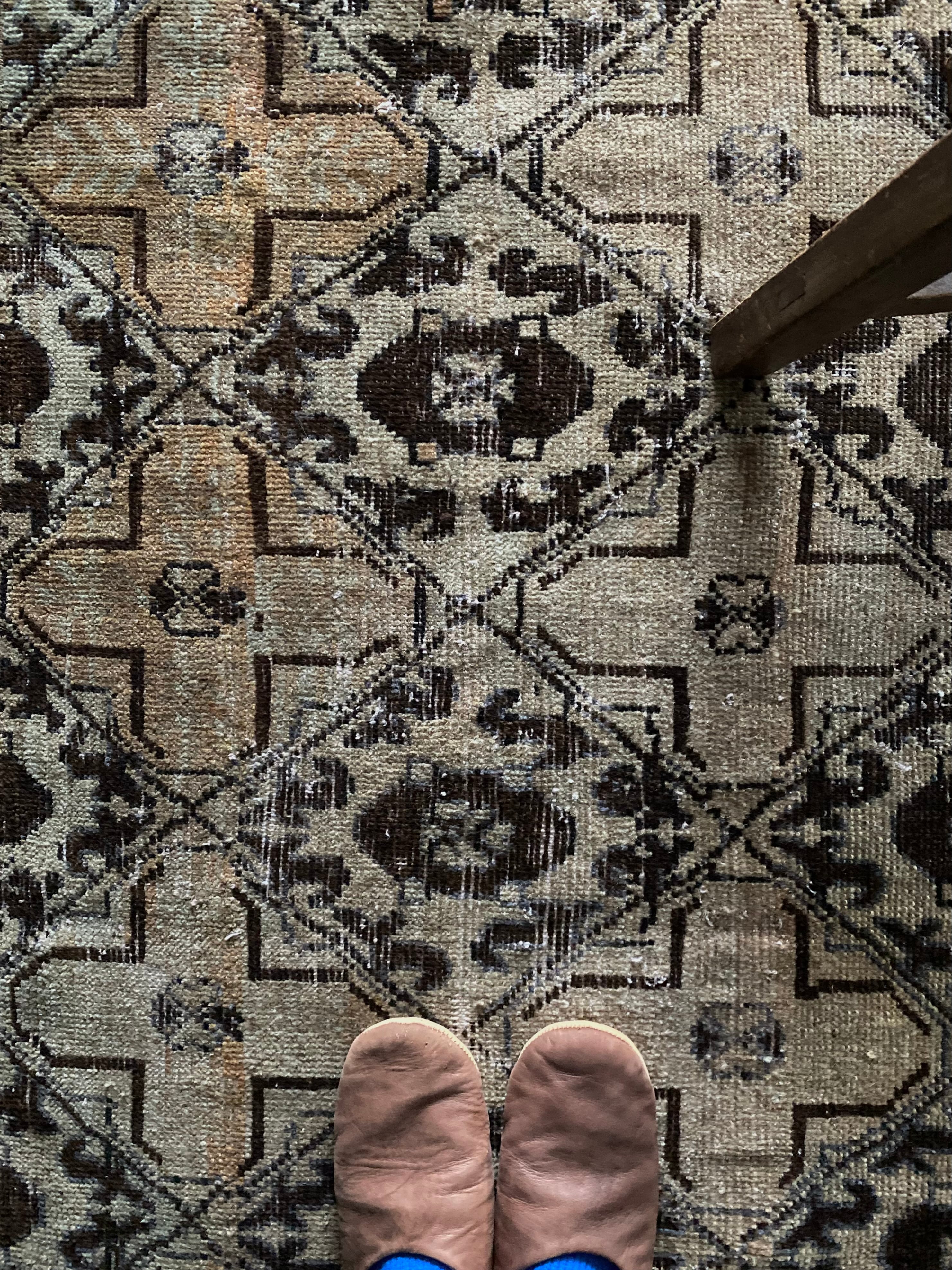 ✔︎ラグにもよりますが羊毛の匂いや50年前のヴィンテージ品ですのでオールド特有の匂いが感じられる事があります。裏返して短時間の天日干しを繰り返しますと徐々に匂いは軽減されていきます。