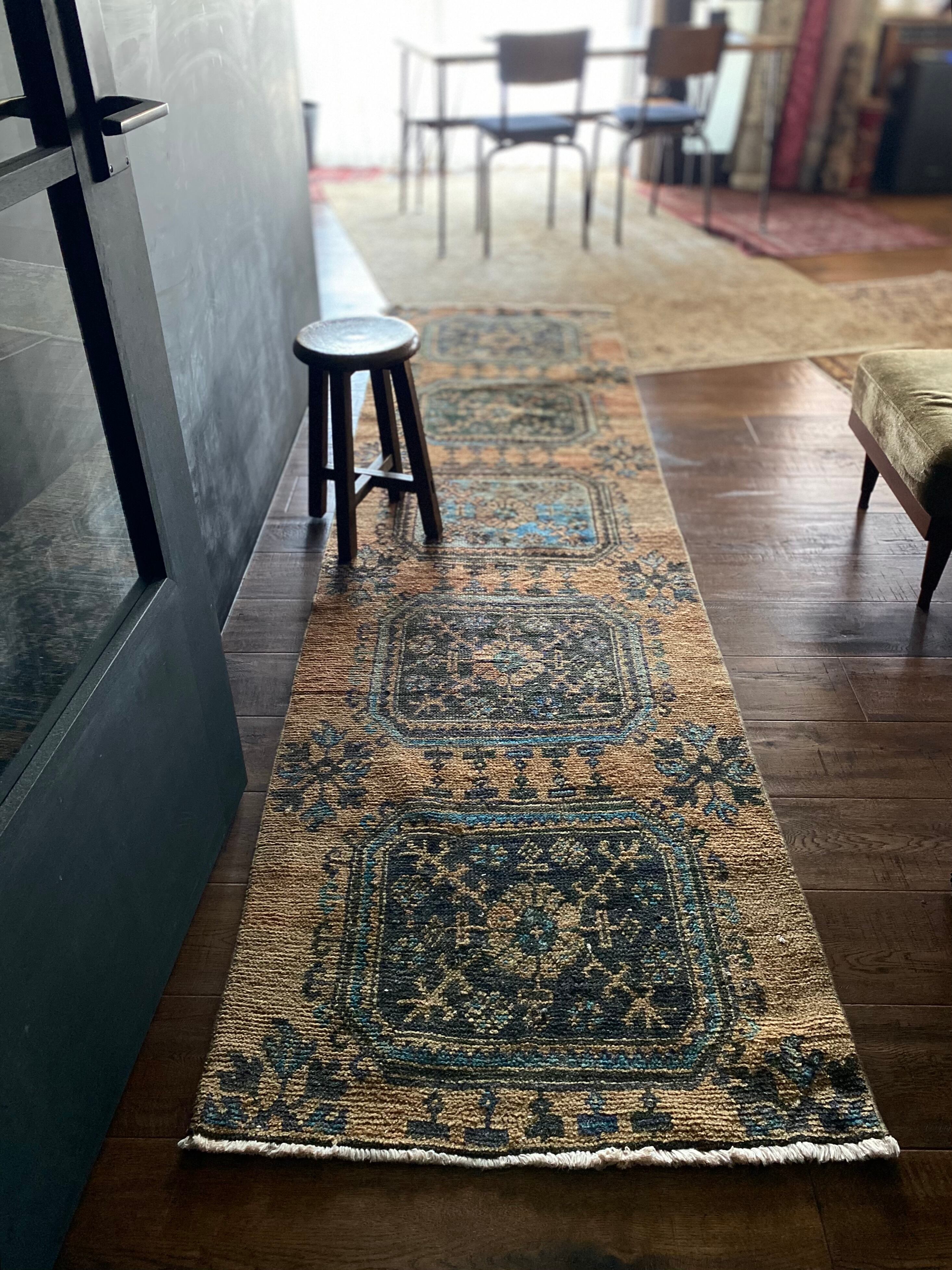 ✔︎手織り、ヴィンテージラグの為、撓み、カスレ、修復跡などございますがどれもヴィンテージならではの風合いとして扱っております。