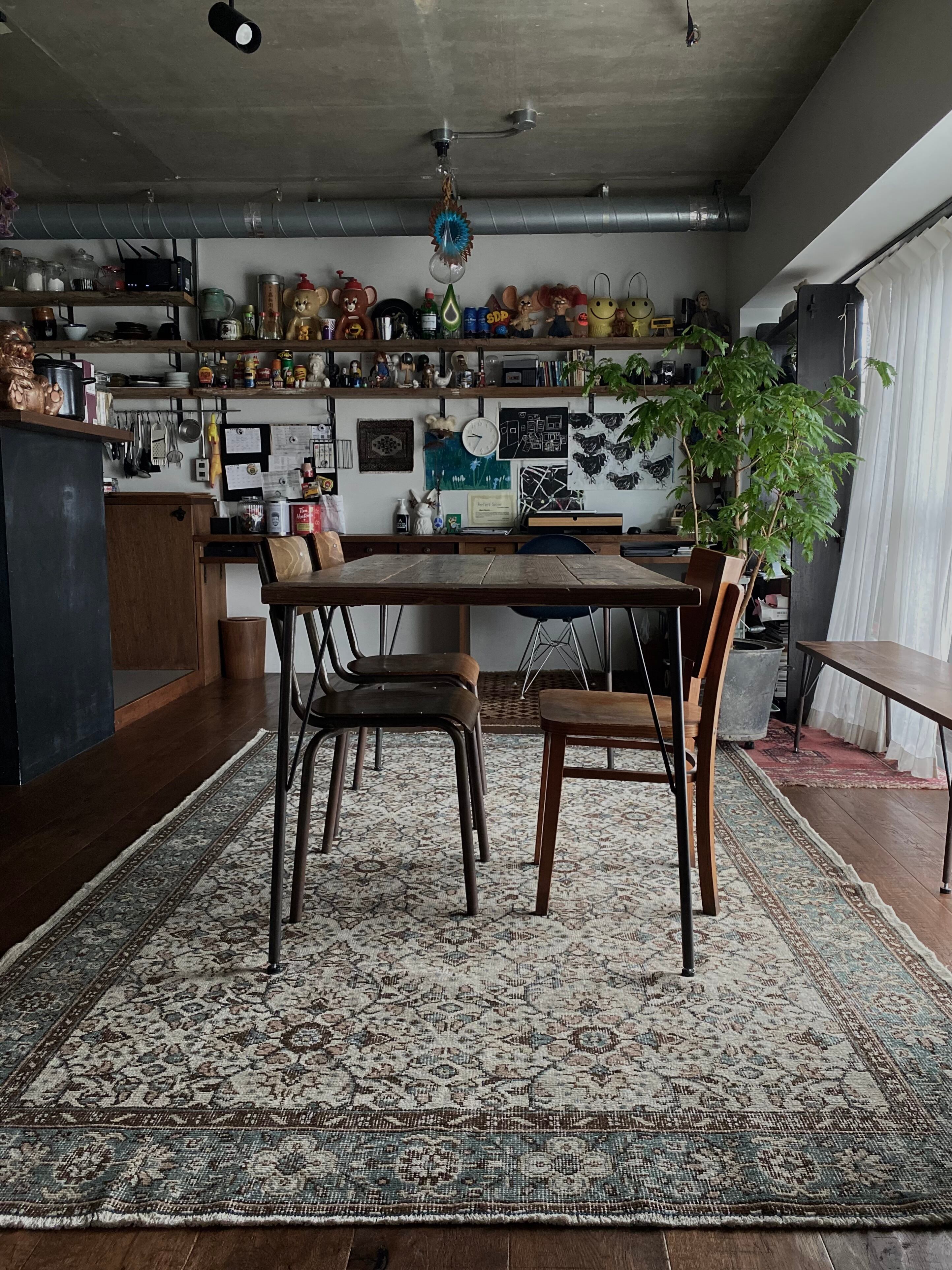 ✔︎手織り、ヴィンテージラグの為、撓み、カスレ、修復跡などございますがどれもヴィンテージならではの風合いとして扱っております。