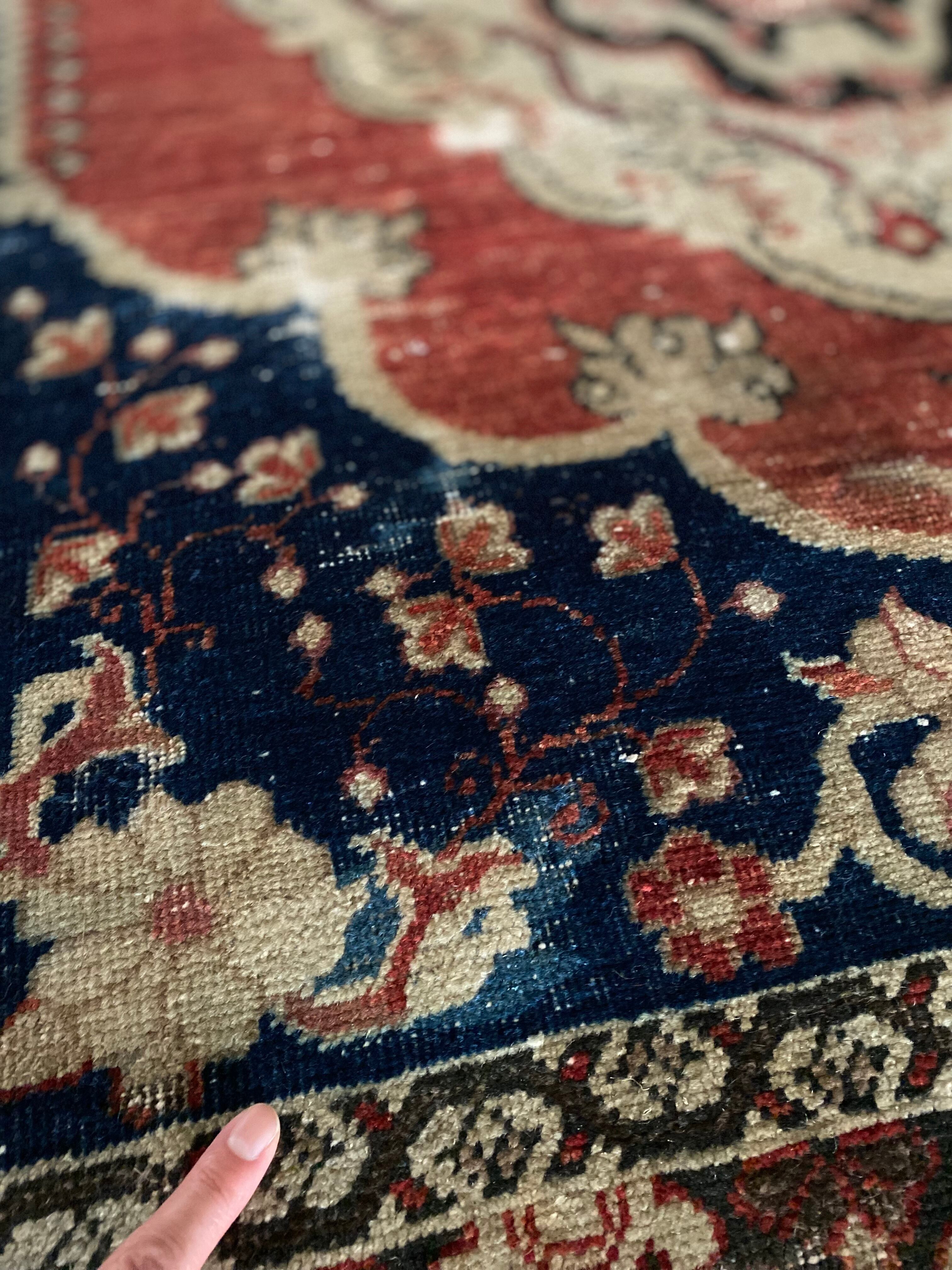 ✔︎手織り、ヴィンテージラグの為、撓み、カスレ、修復跡などございますがどれもヴィンテージならではの風合いとして扱っております。