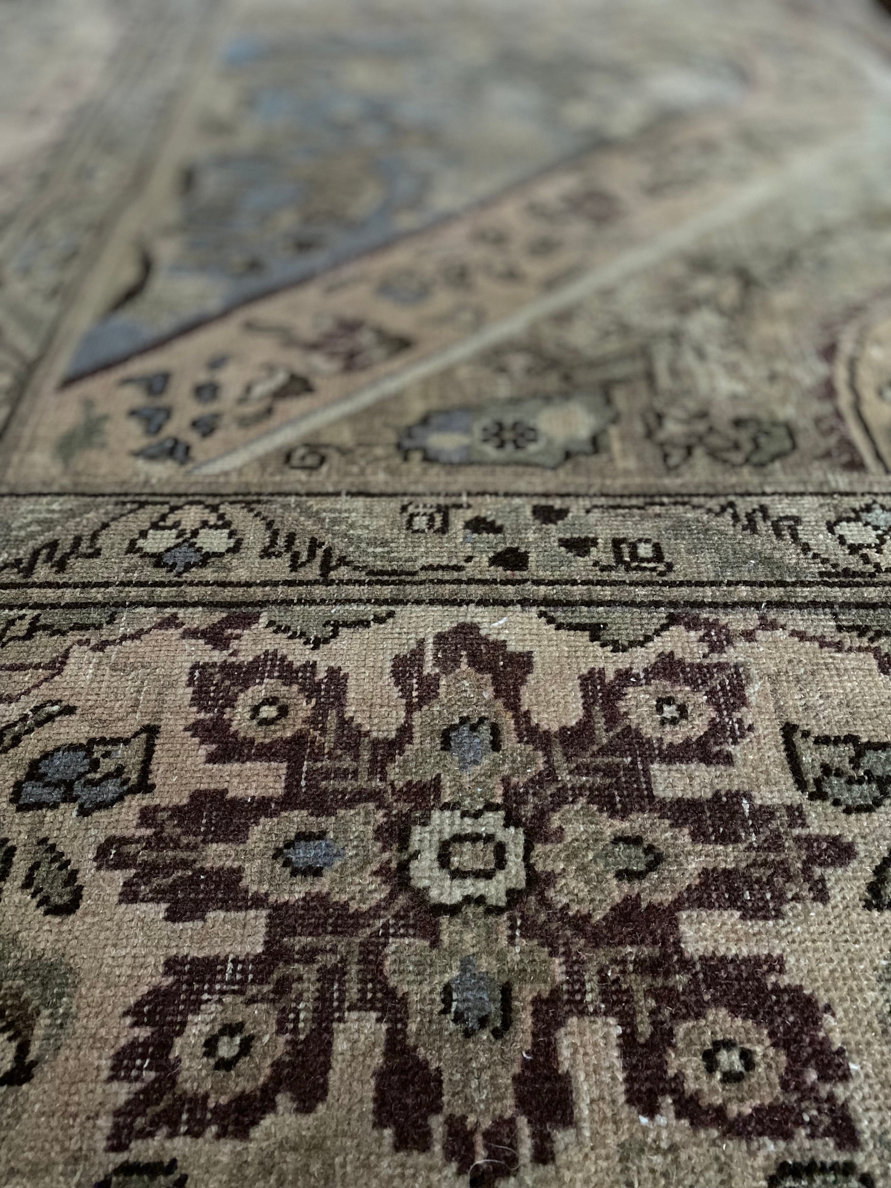長方形のランナータイプで、廊下やキッチン、ベッドサイドなど細長いスペースにぴったり。経年による風合いが、空間に温もりと深みをもたらします。アンティーク家具や無垢材のフローリングとの相性も抜群です。
