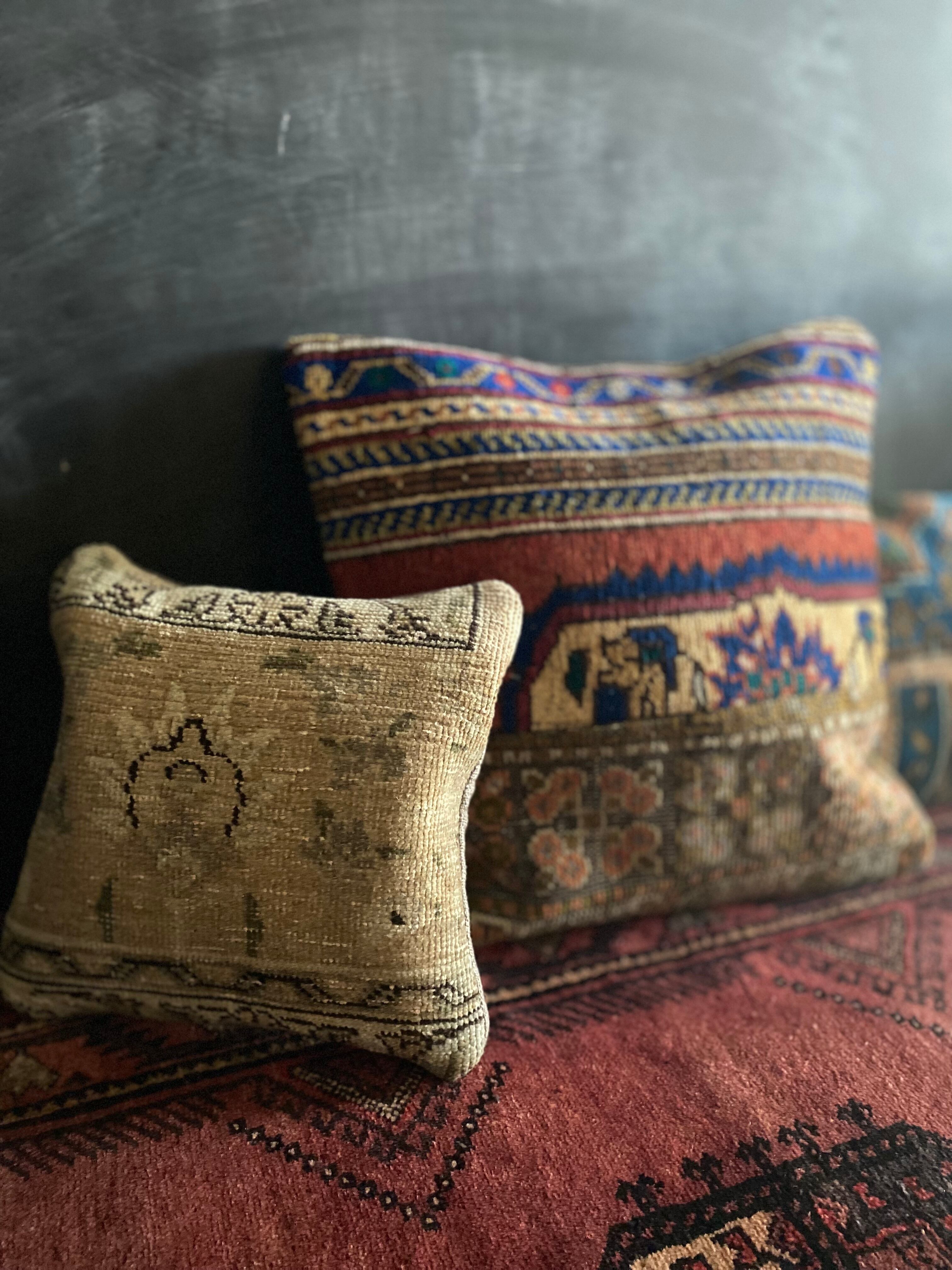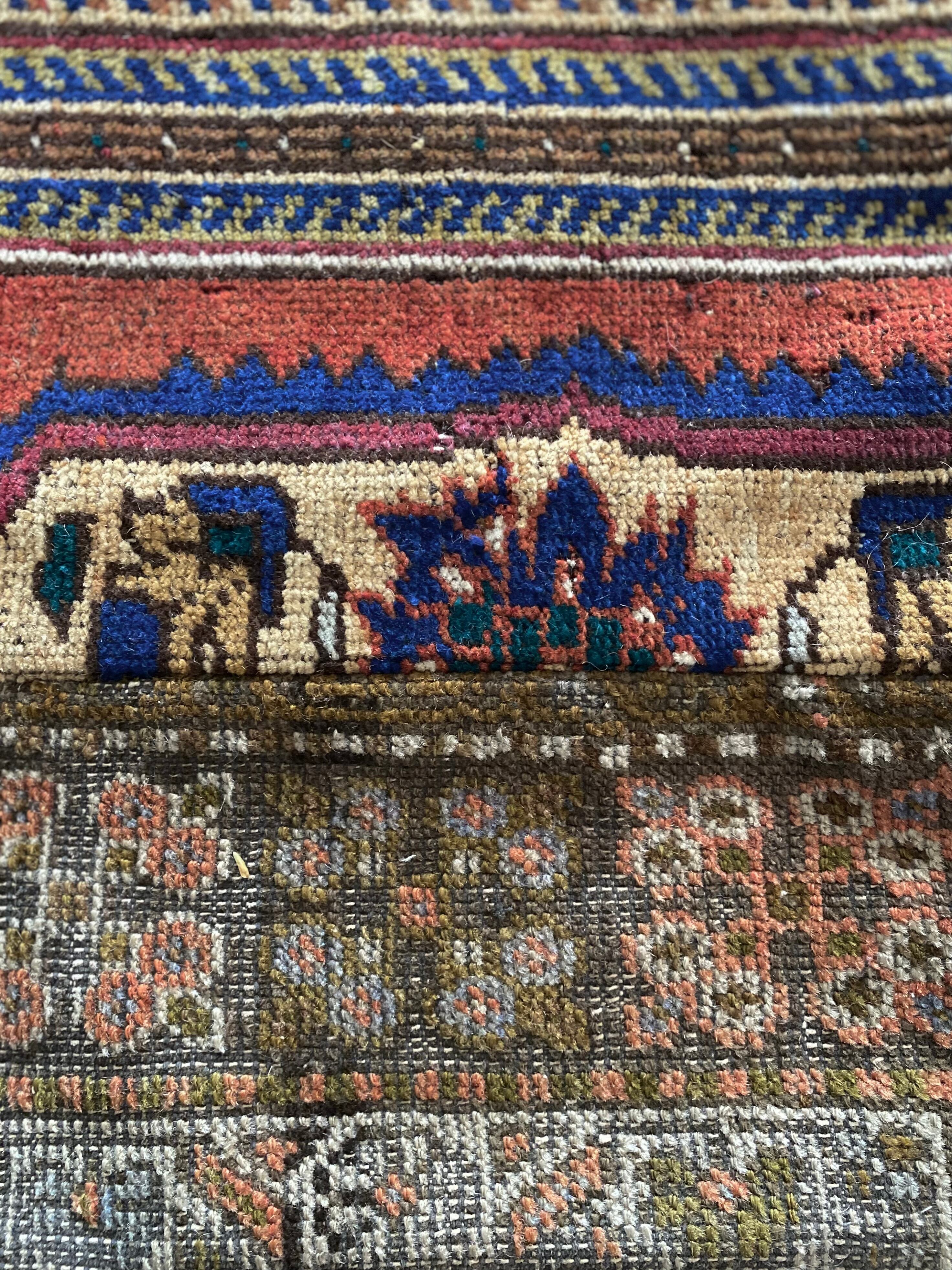 本品は1970年代のヴィンテージラグを使用しています。経年による羊毛特有の匂いや、**ヴィンテージ特有の風合い(撓み・擦れ・補修跡など)**が見られる場合がございます。これらは商品の特性・魅力としてご理解いただけますと幸いです。