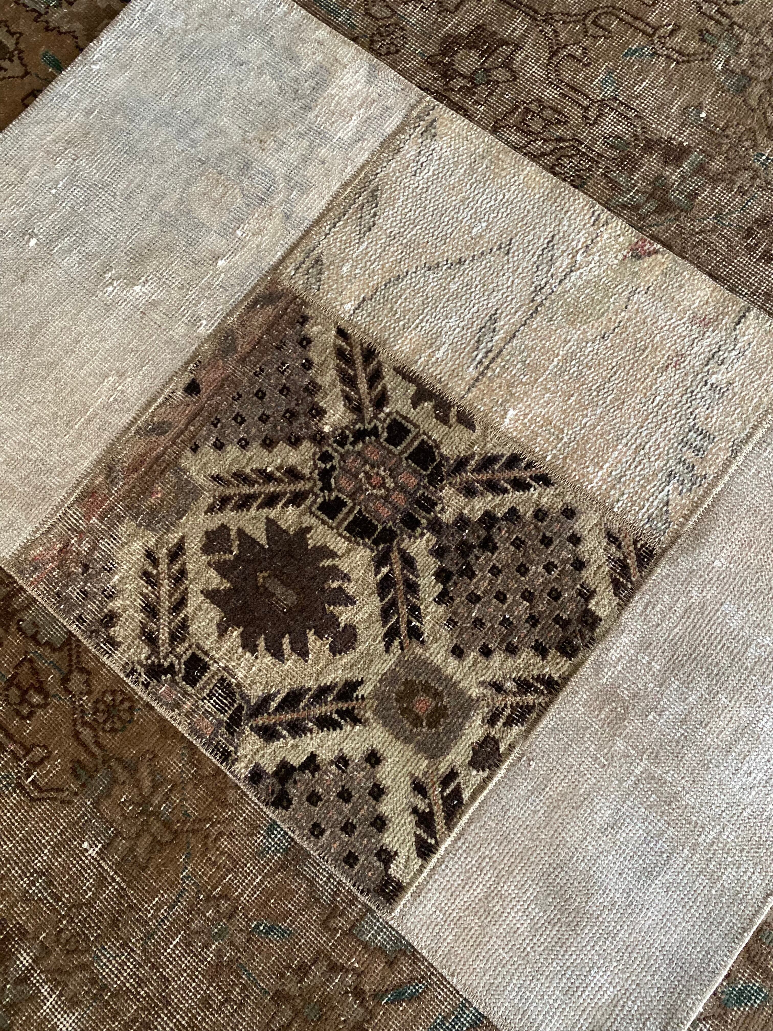 カラー:ヴィンテージラグをリメイクして作られた、パッチワークのスモールラグです。