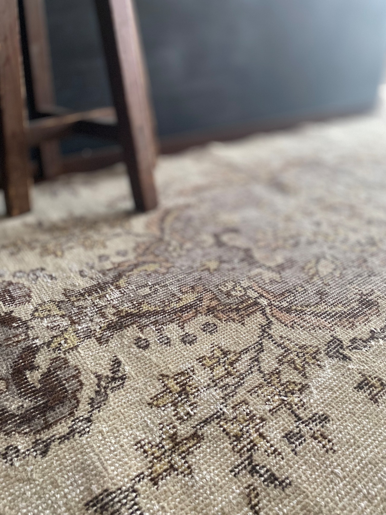 本品は1970年代のヴィンテージラグです。経年による羊毛特有の匂いや、**ヴィンテージ特有の風合い(撓み・擦れ・補修跡など)**が見られる場合がございます。これらは商品の特性・魅力としてご理解いただけますと幸いです。