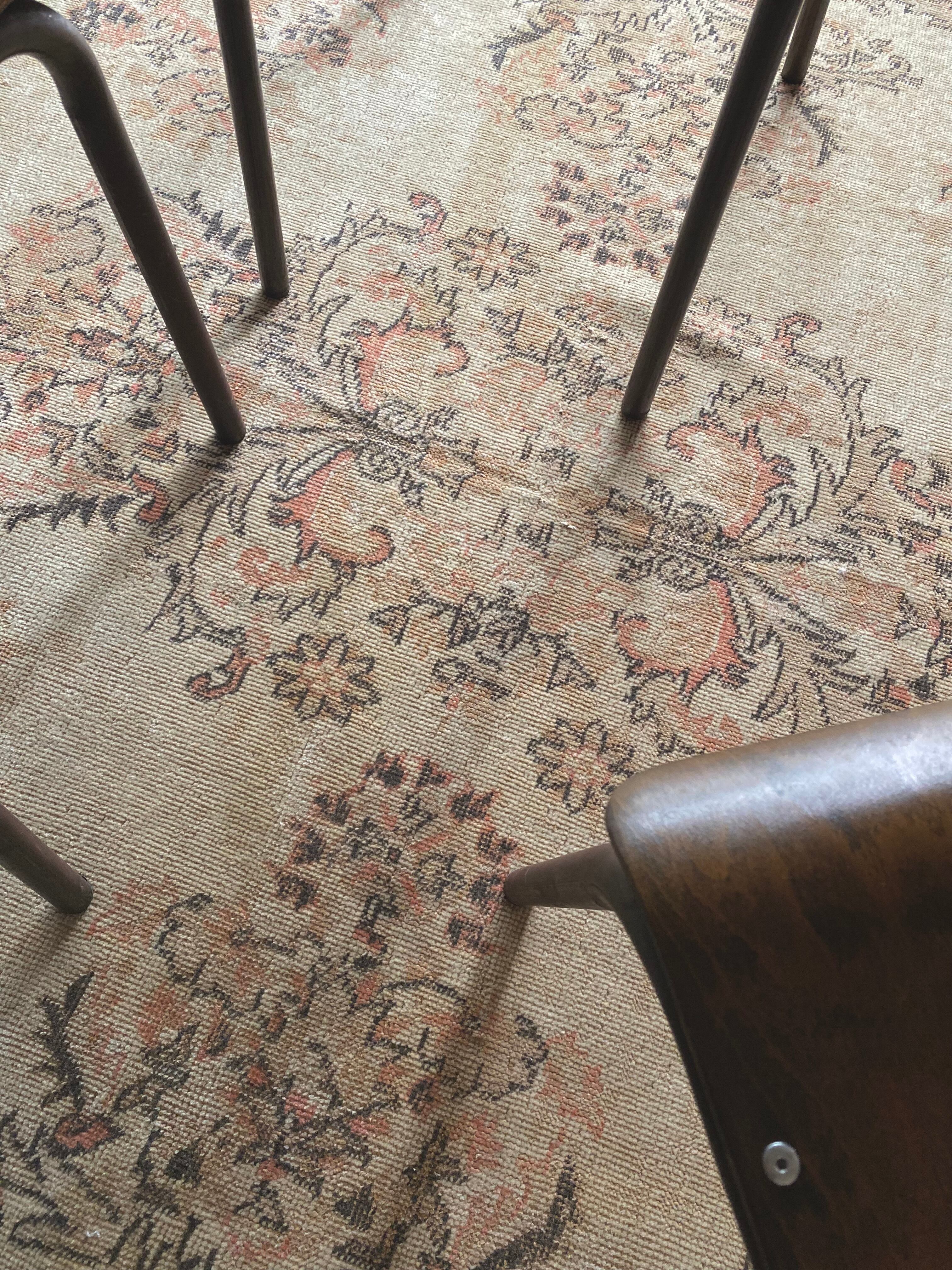 本品は1970年代のヴィンテージラグです。経年による羊毛特有の匂いや、**ヴィンテージ特有の風合い(撓み・擦れ・補修跡など)**が見られる場合がございます。これらは商品の特性・魅力としてご理解いただけますと幸いです。