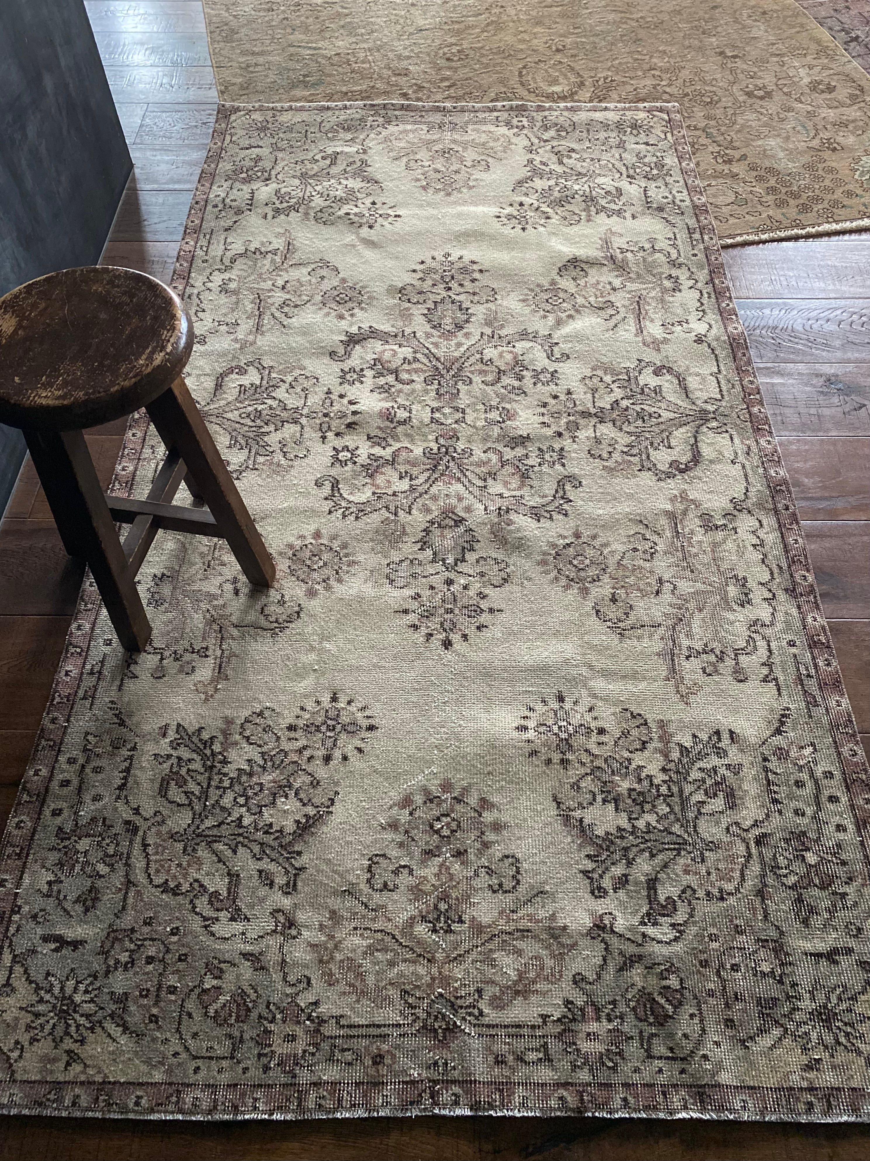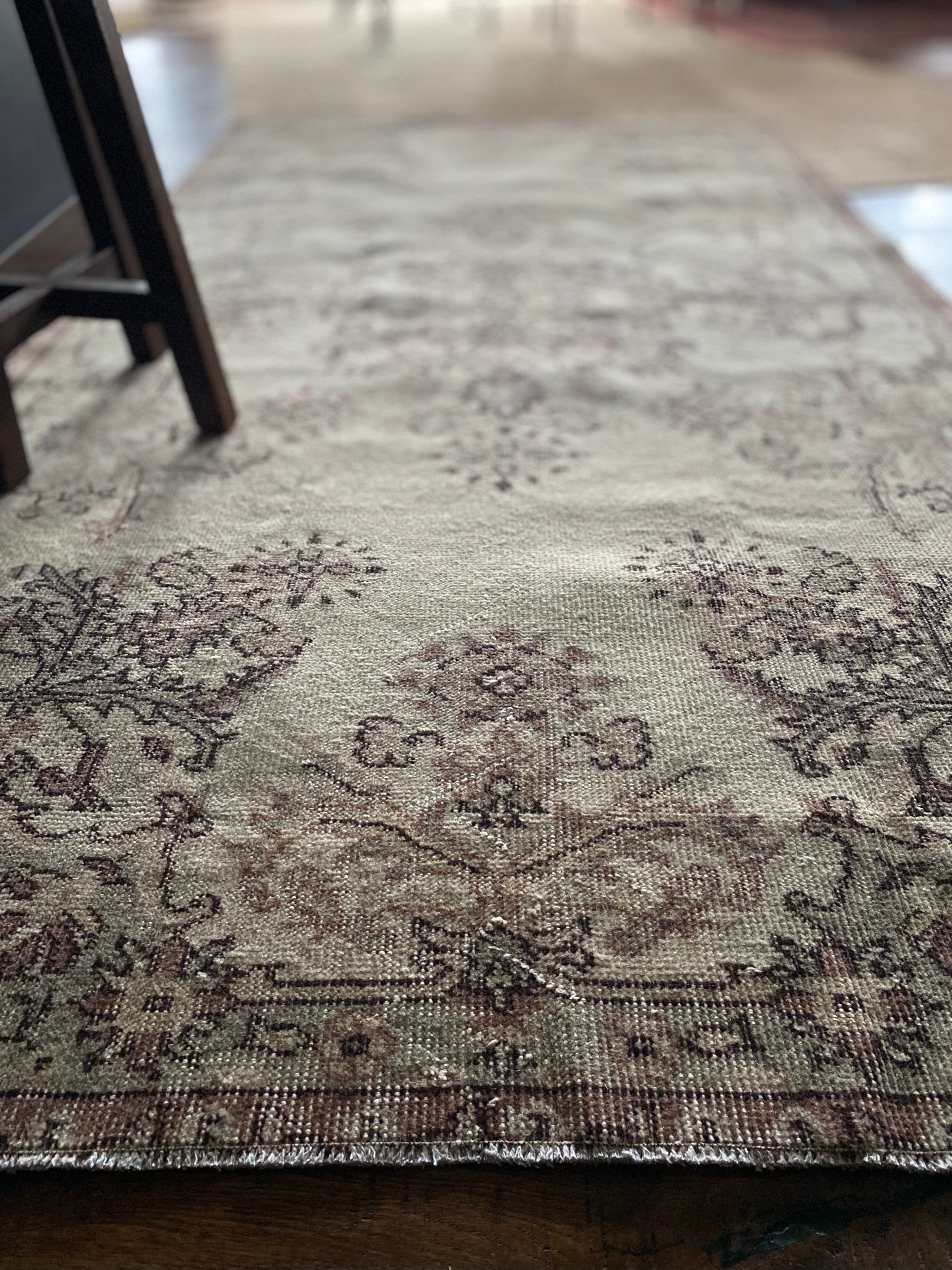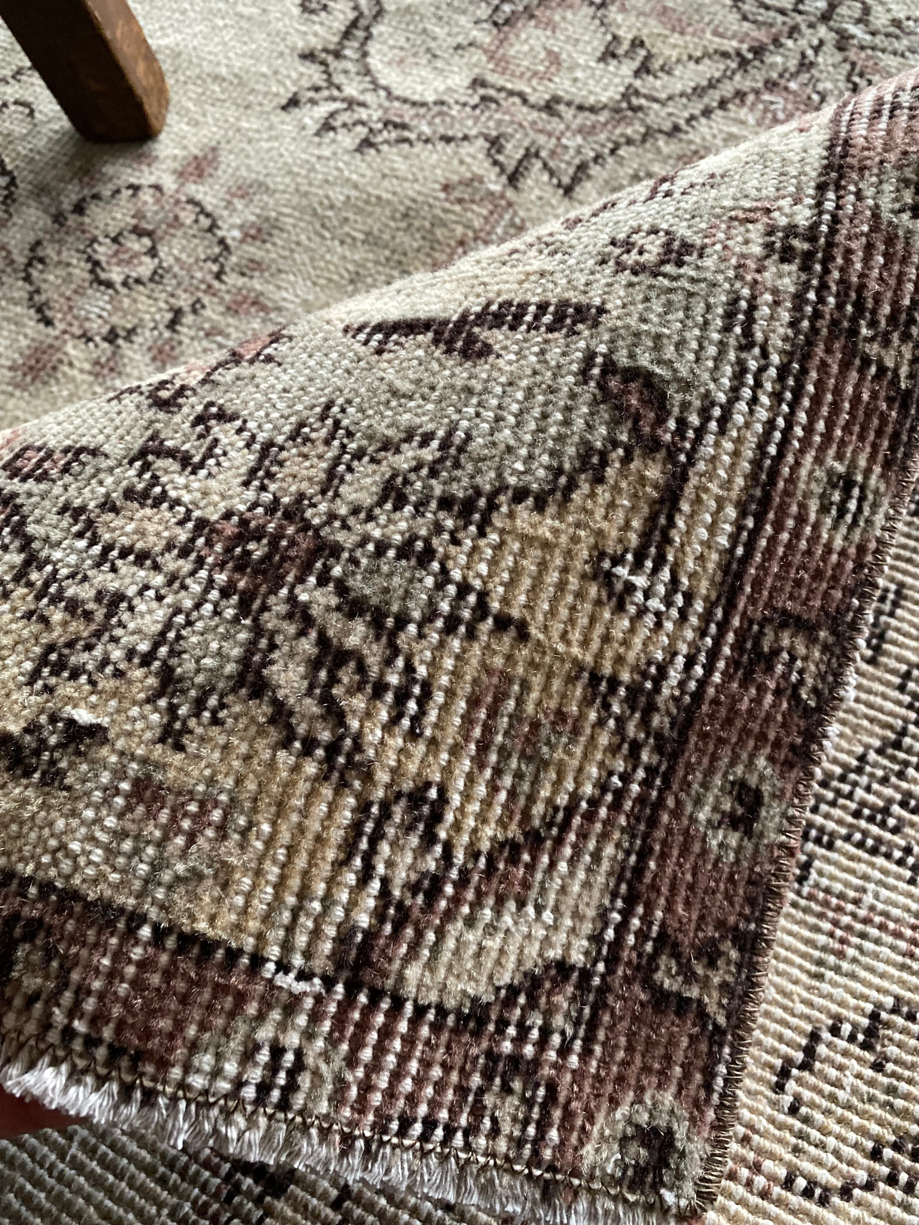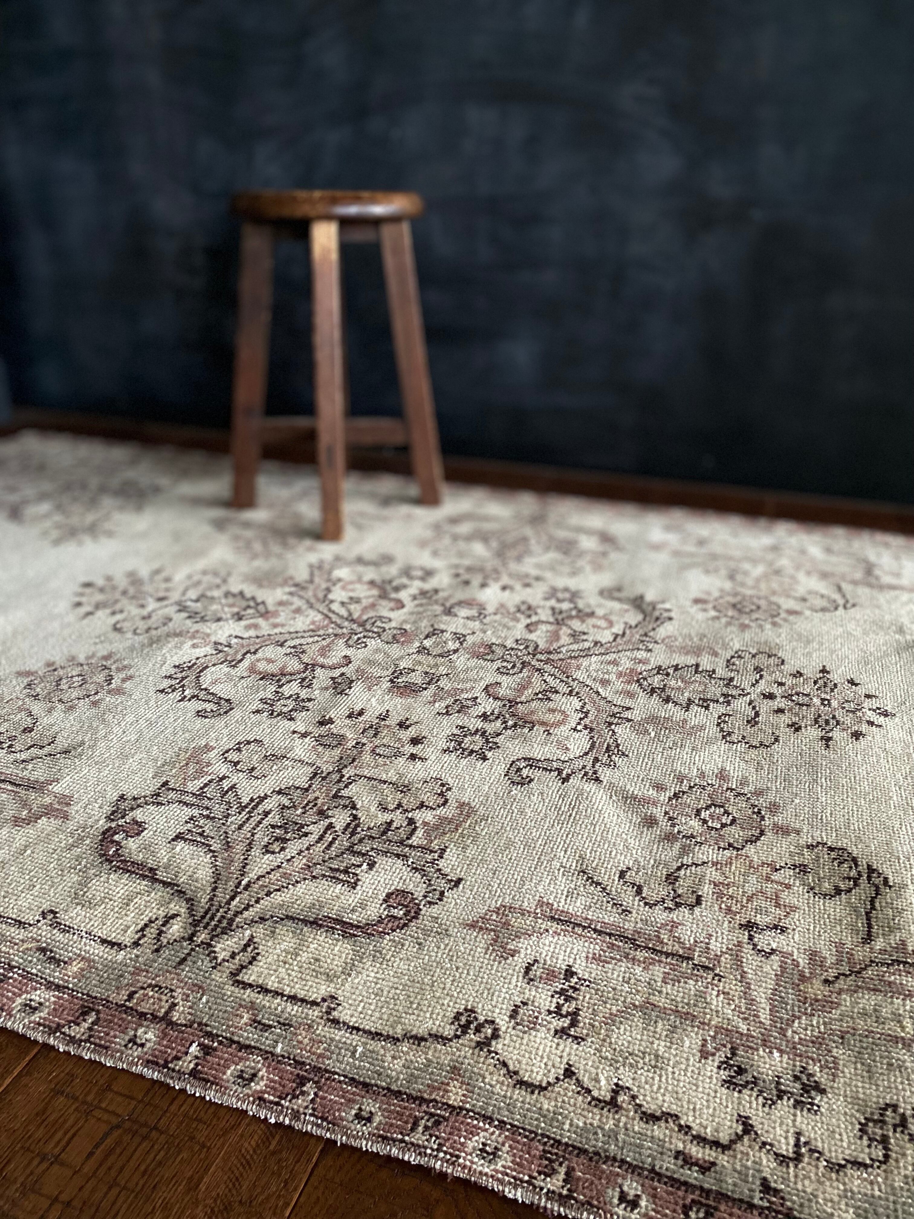 優しいニュアンスカラーが魅力のボタニカル柄ヴィンテージラグです。
