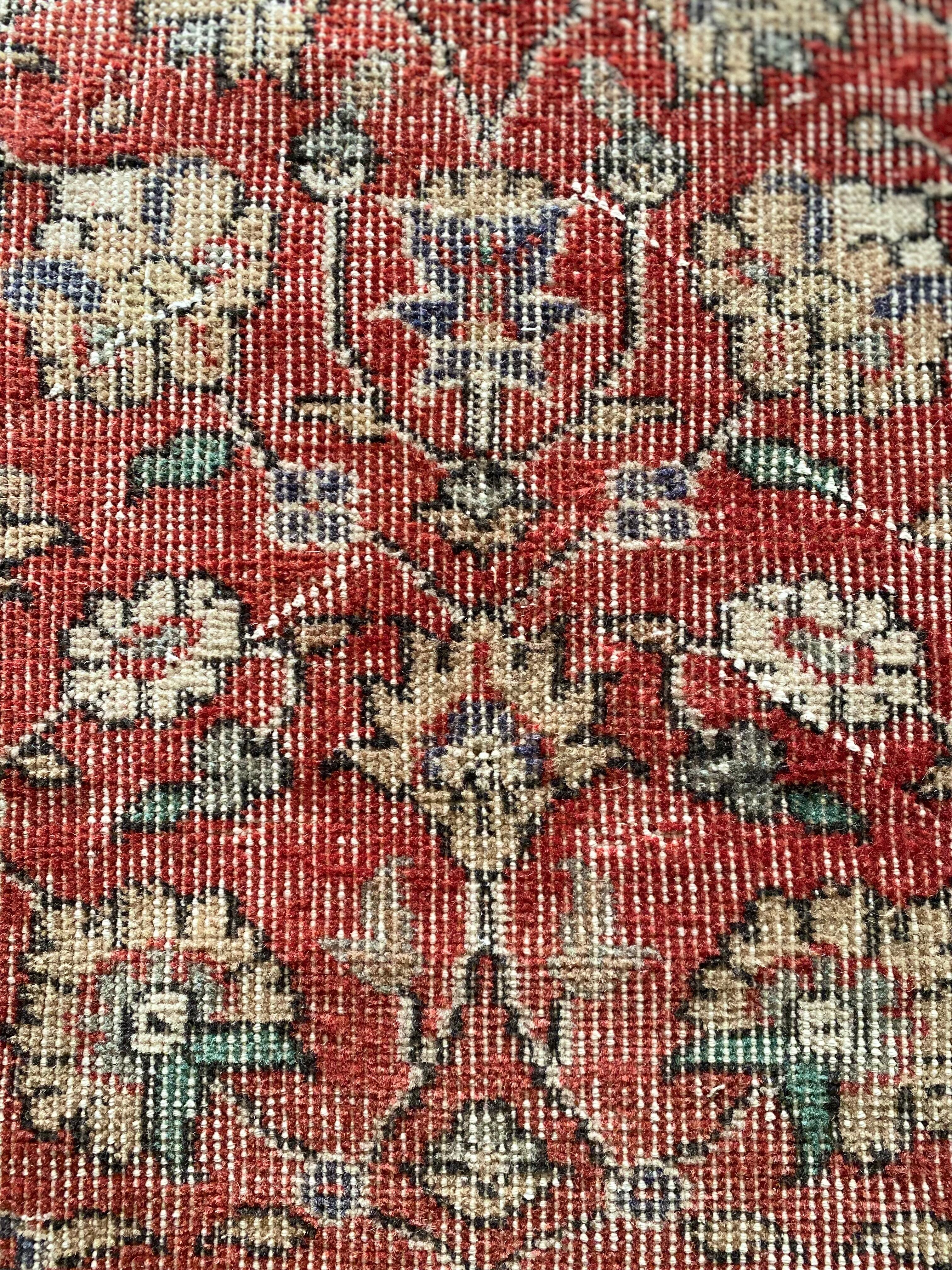 赤ベースに、花柄が全面に織り込まれたヴィンテージラグ。