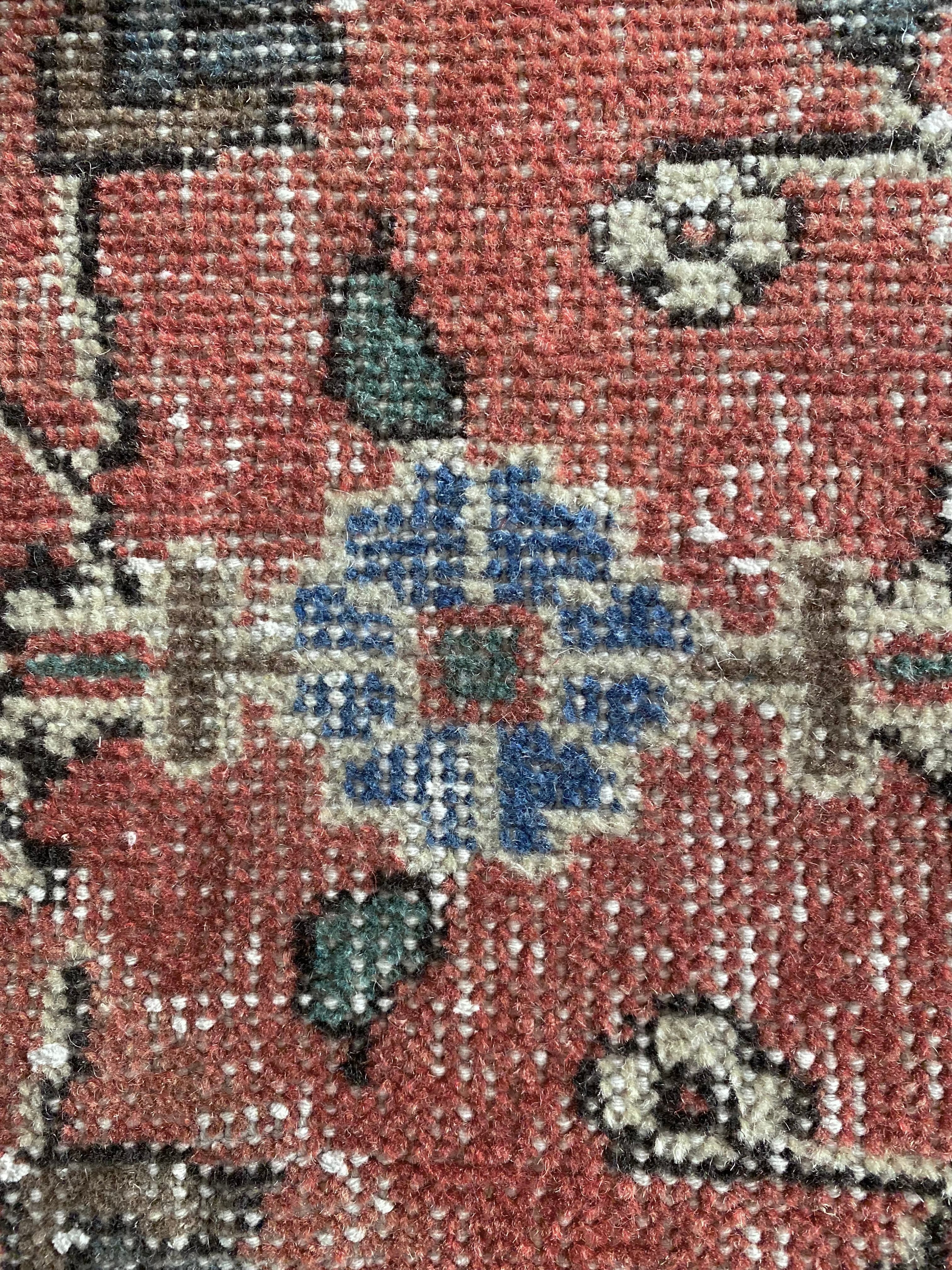 赤花柄ヴィンテージラグ