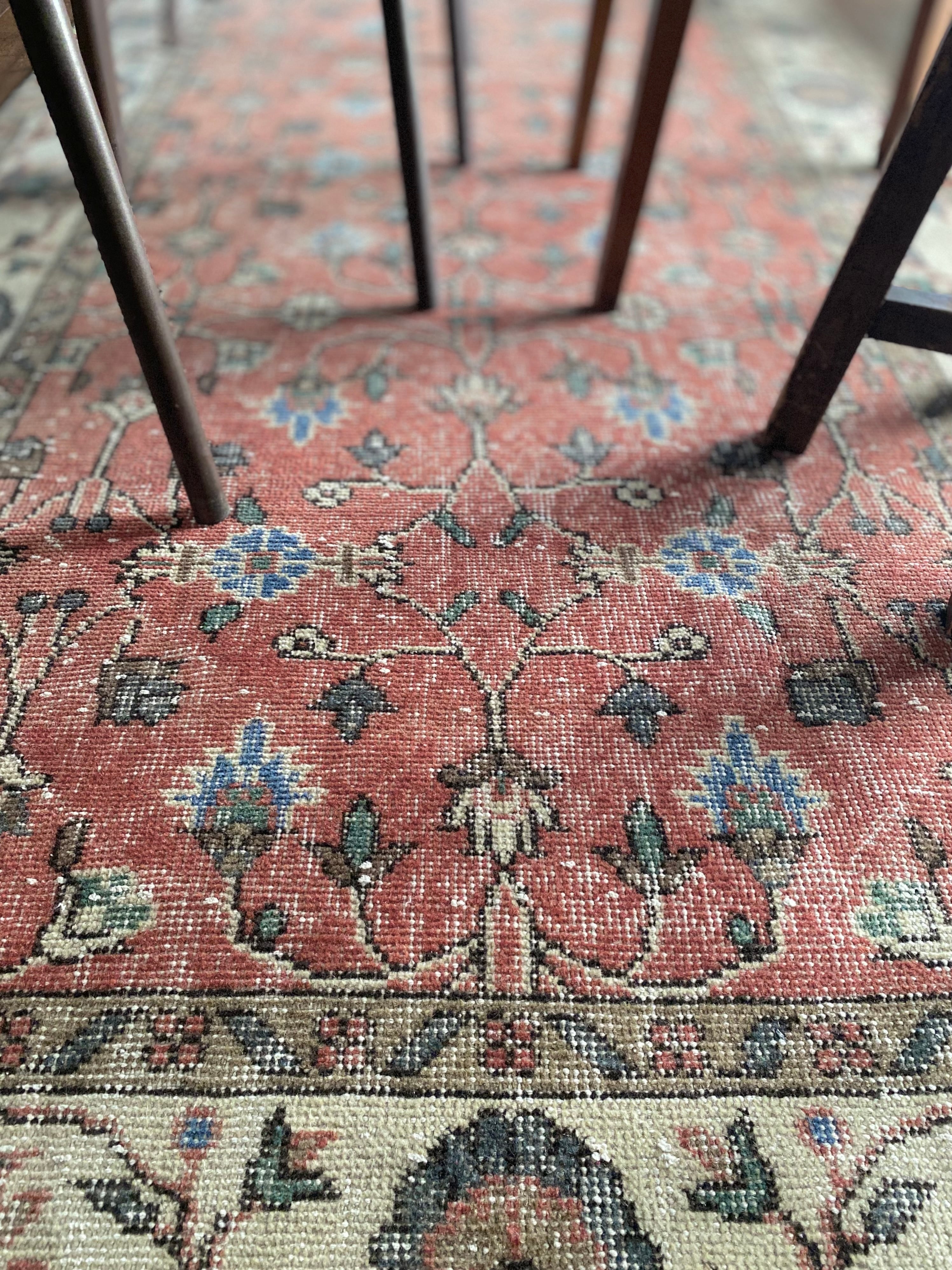 褪せた赤が美しい、ヴィンテージラグ。