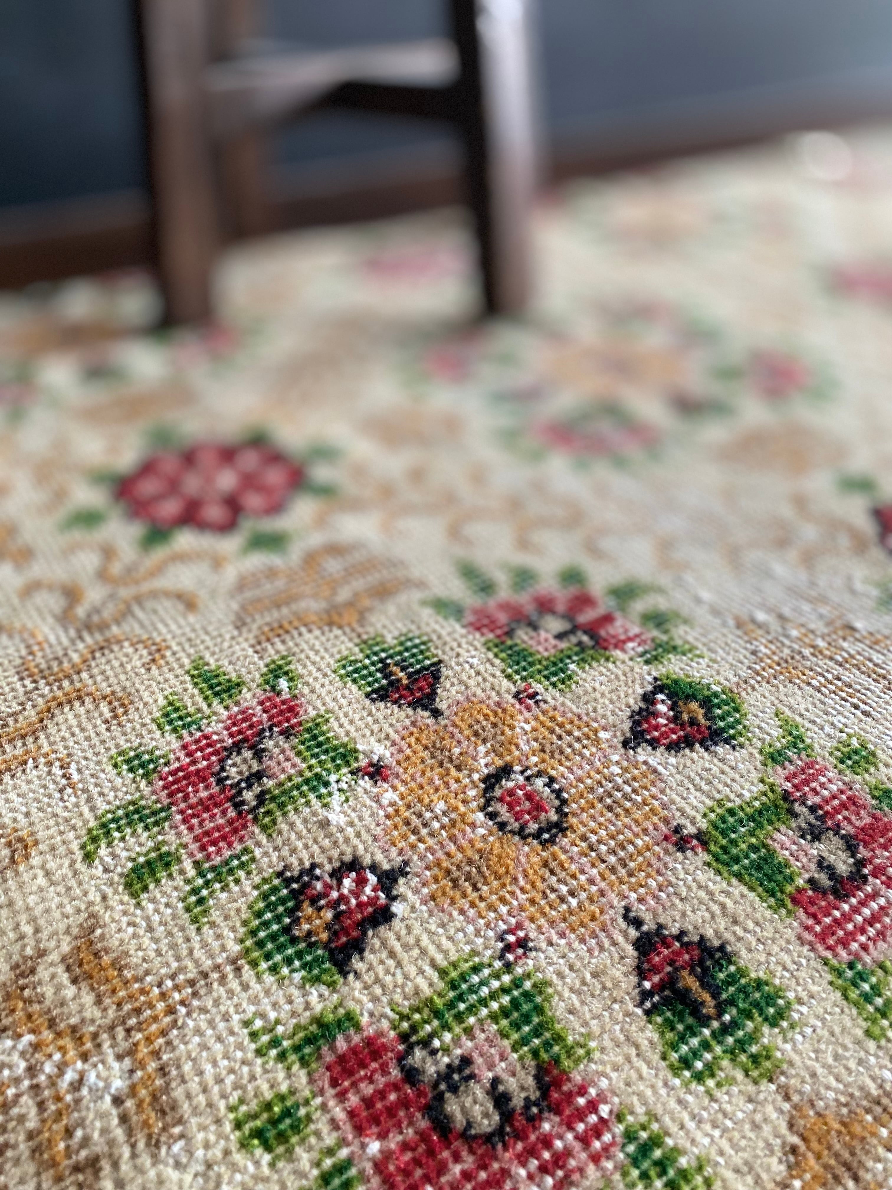 本品は1970年代のヴィンテージラグです。経年による羊毛特有の匂いや、**ヴィンテージ特有の風合い(撓み・擦れ・補修跡など)**が見られる場合がございます。これらは商品の特性・魅力としてご理解いただけますと幸いです。