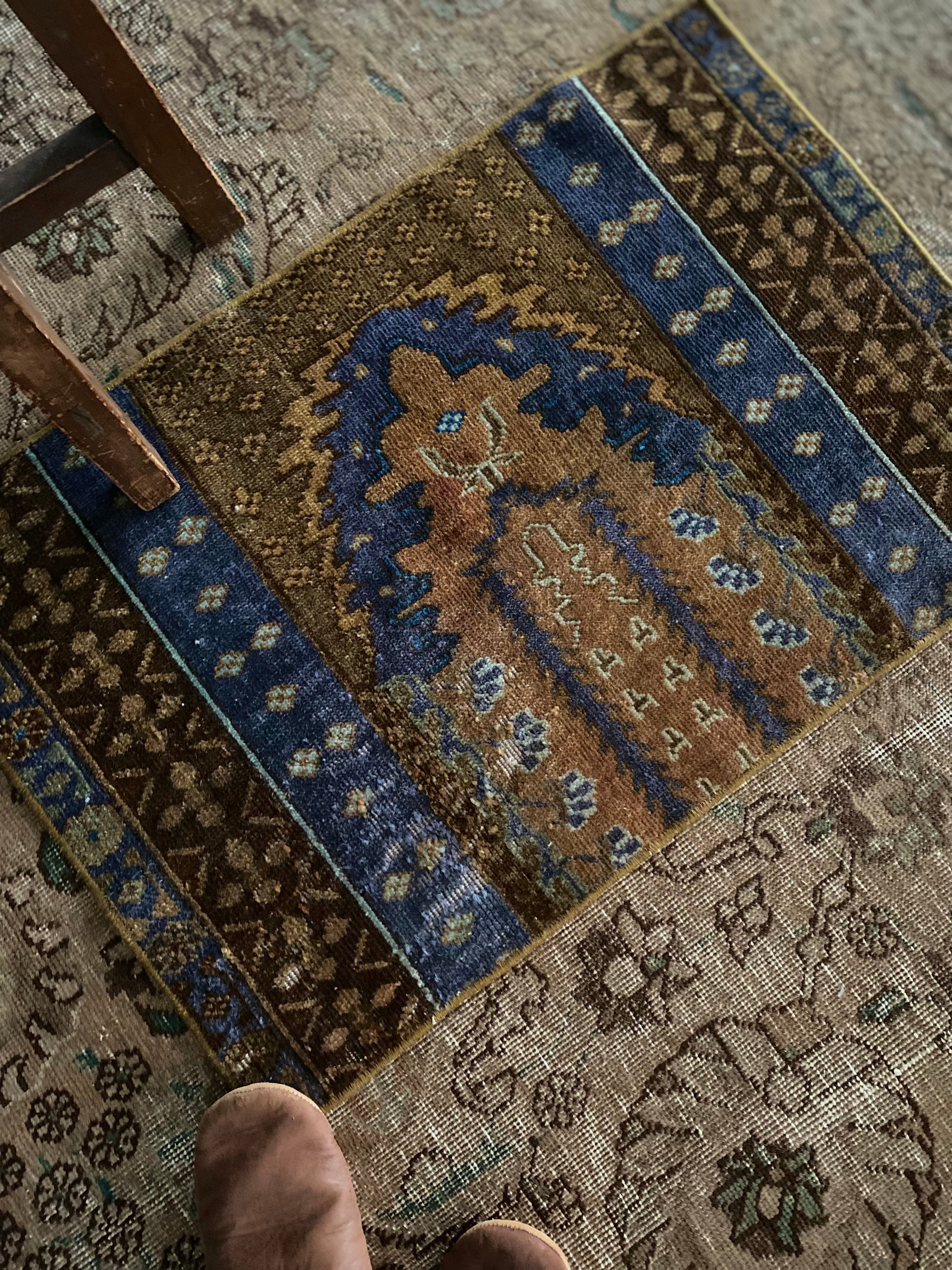 本品は1970年代のヴィンテージラグです。経年による羊毛特有の匂いや、**ヴィンテージ特有の風合い(撓み・擦れ・補修跡など)**が見られる場合がございます。これらは商品の特性・魅力としてご理解いただけますと幸いです。