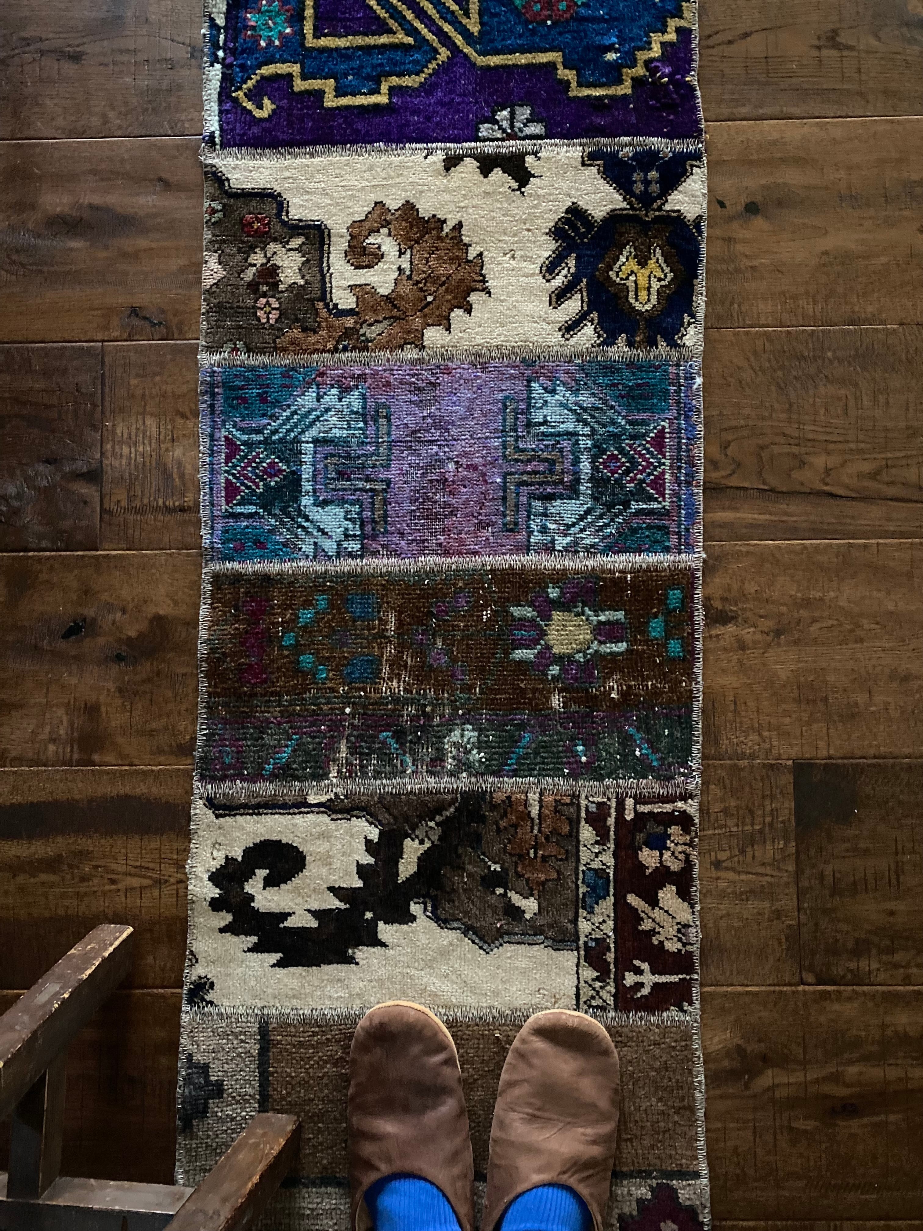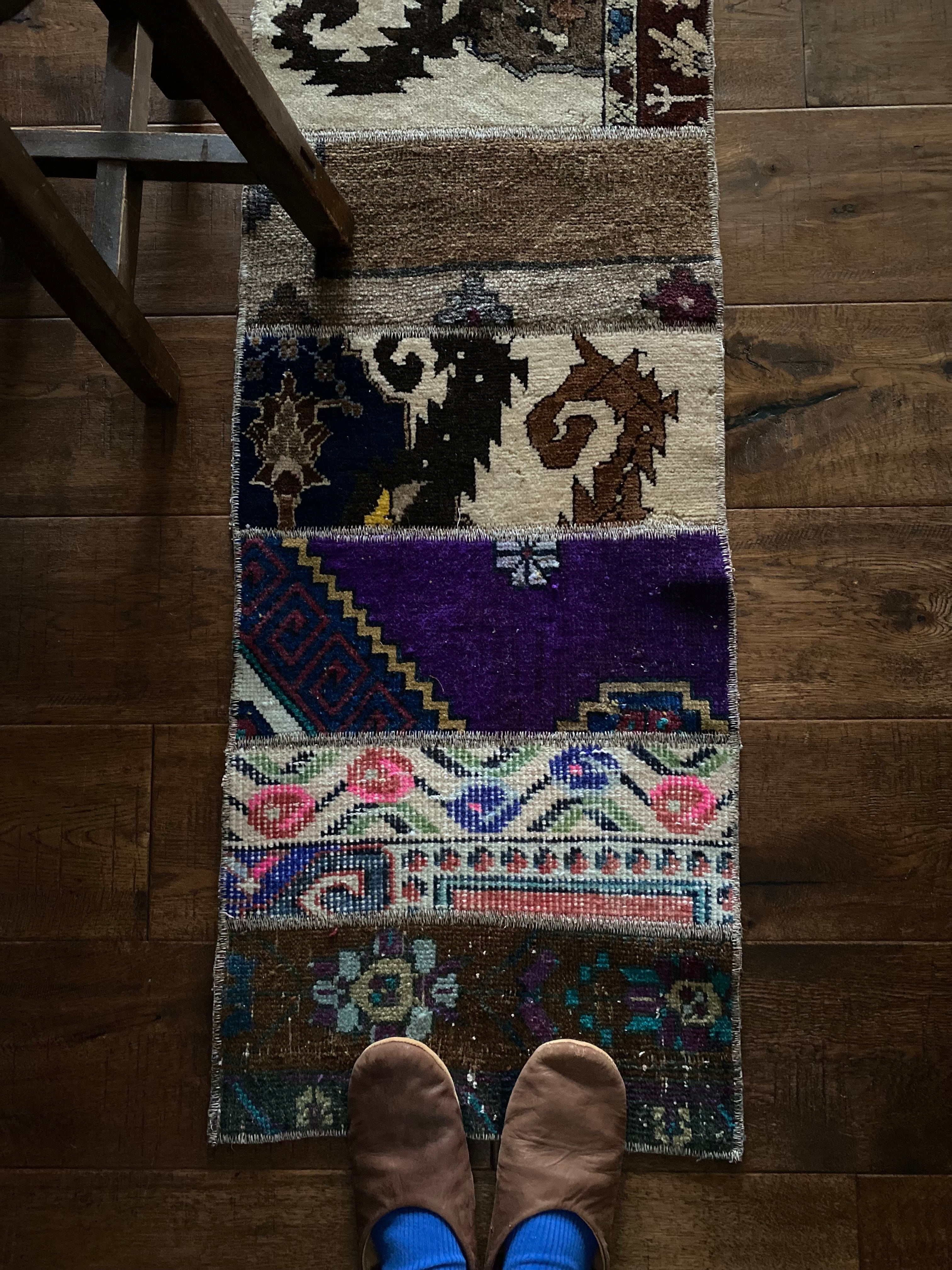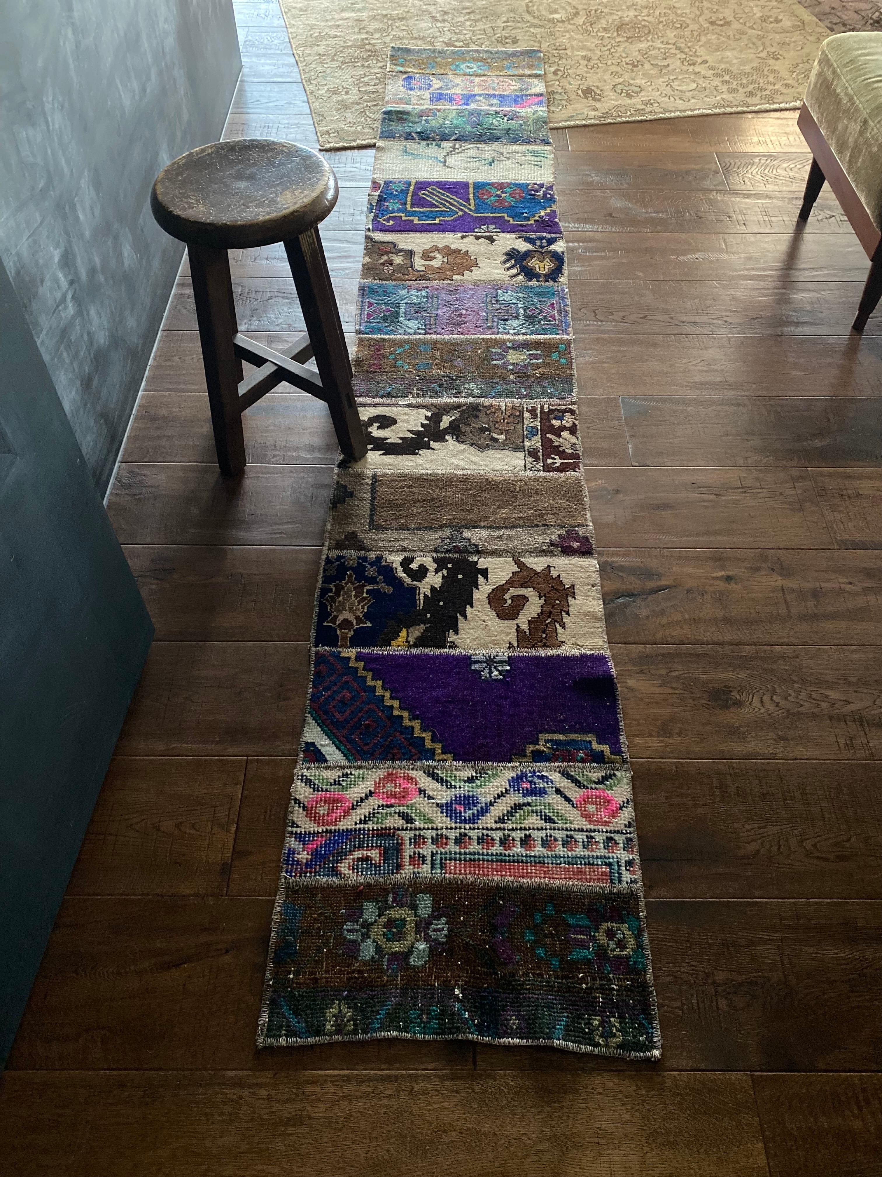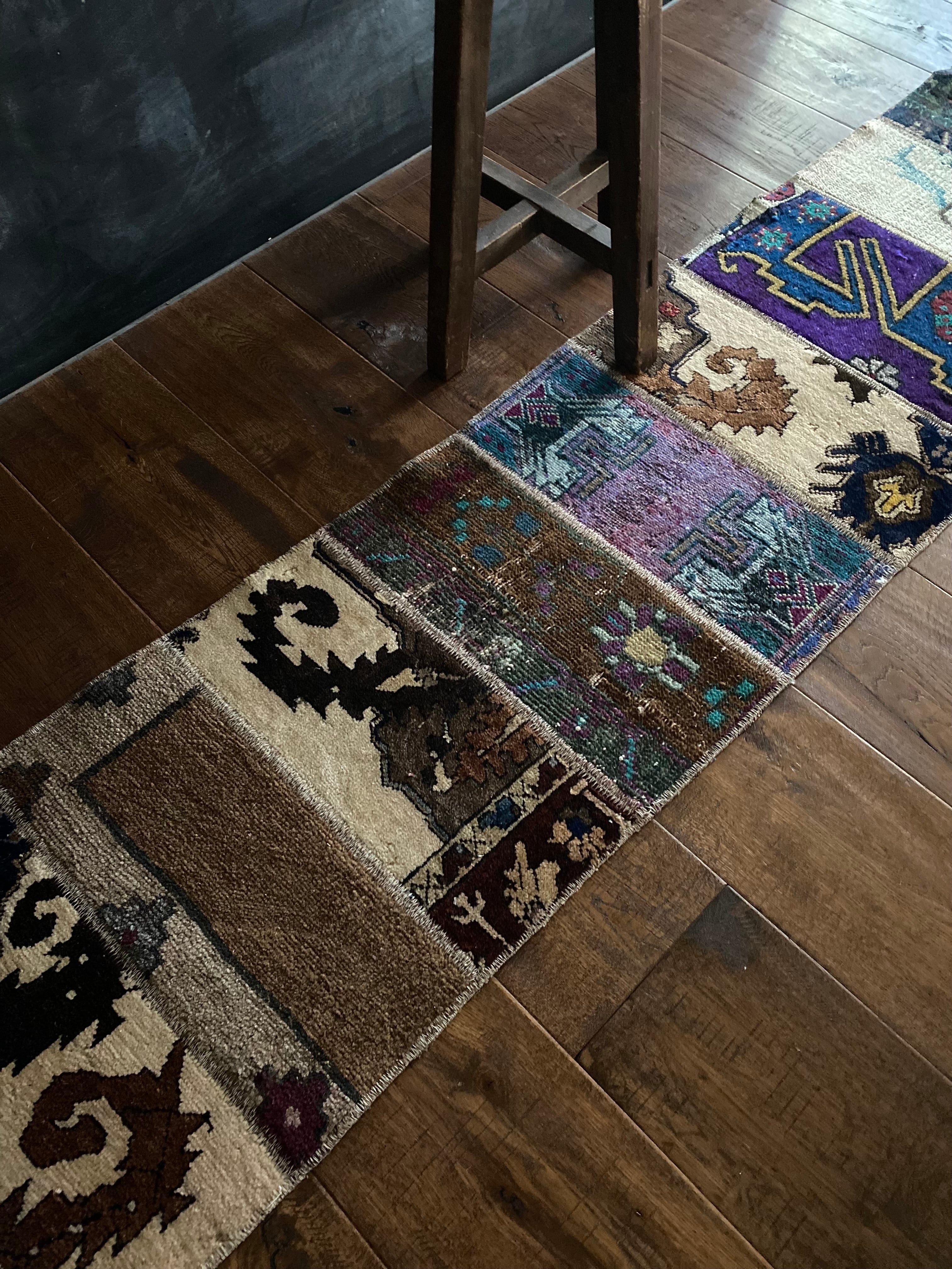 ヴィンテージ 細めパッチワークロングランナーラグ