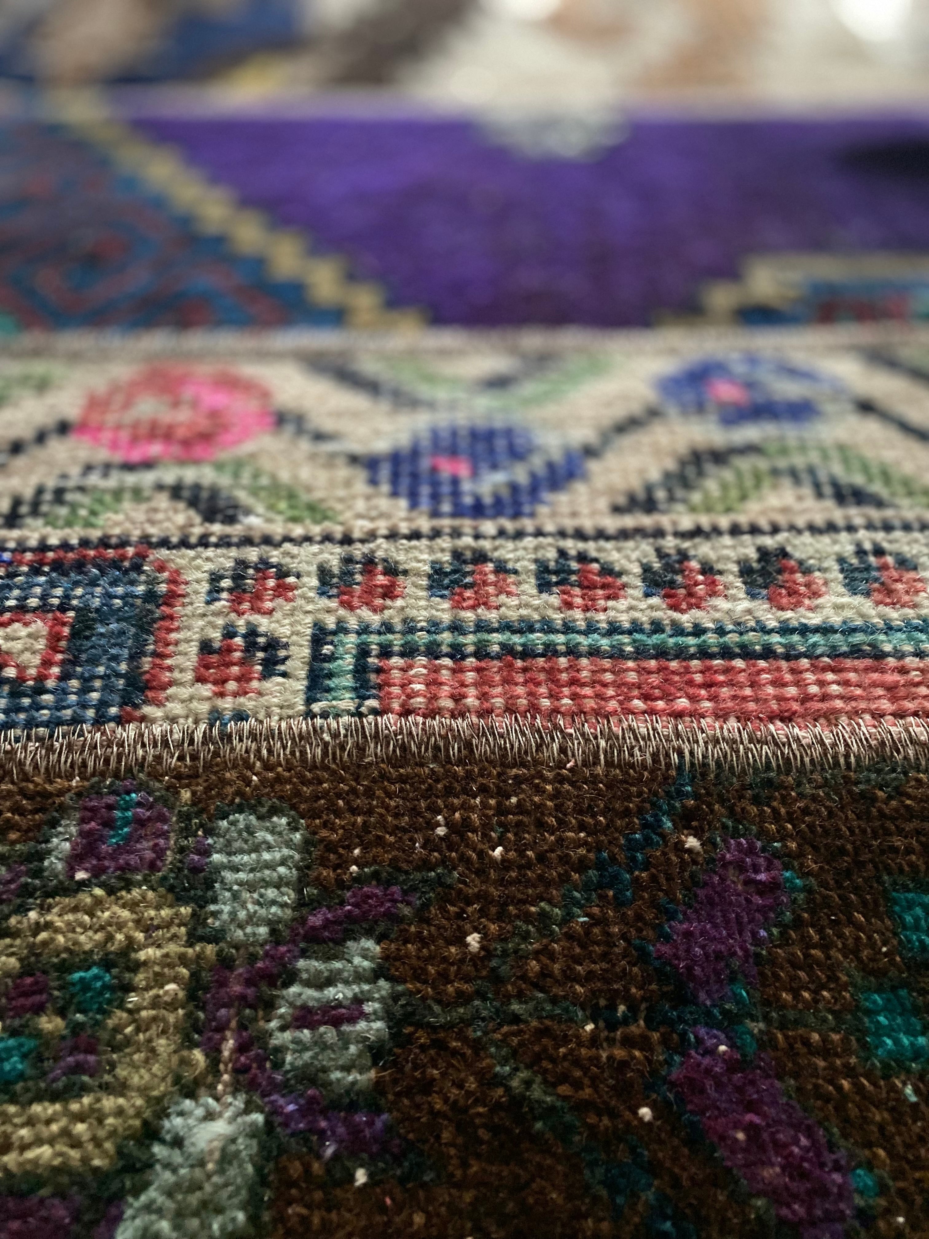 本品は1970年代のヴィンテージラグです。経年による羊毛特有の匂いや、**ヴィンテージ特有の風合い(撓み・擦れ・補修跡など)**が見られる場合がございます。これらは商品の特性・魅力としてご理解いただけますと幸いです。