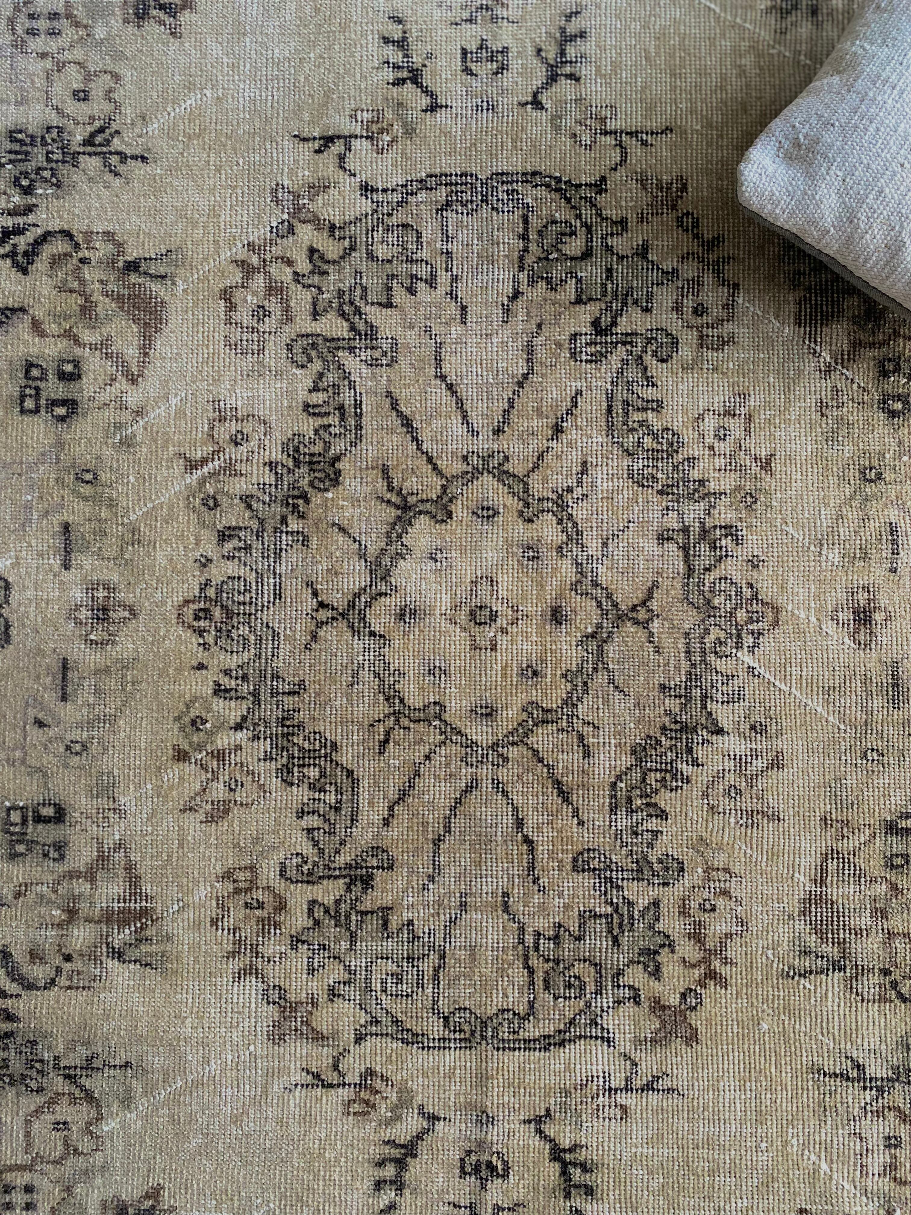 落ち着きあるサンドベージュが空間にすっと馴染む、ヴィンテージメダリオンラグ。