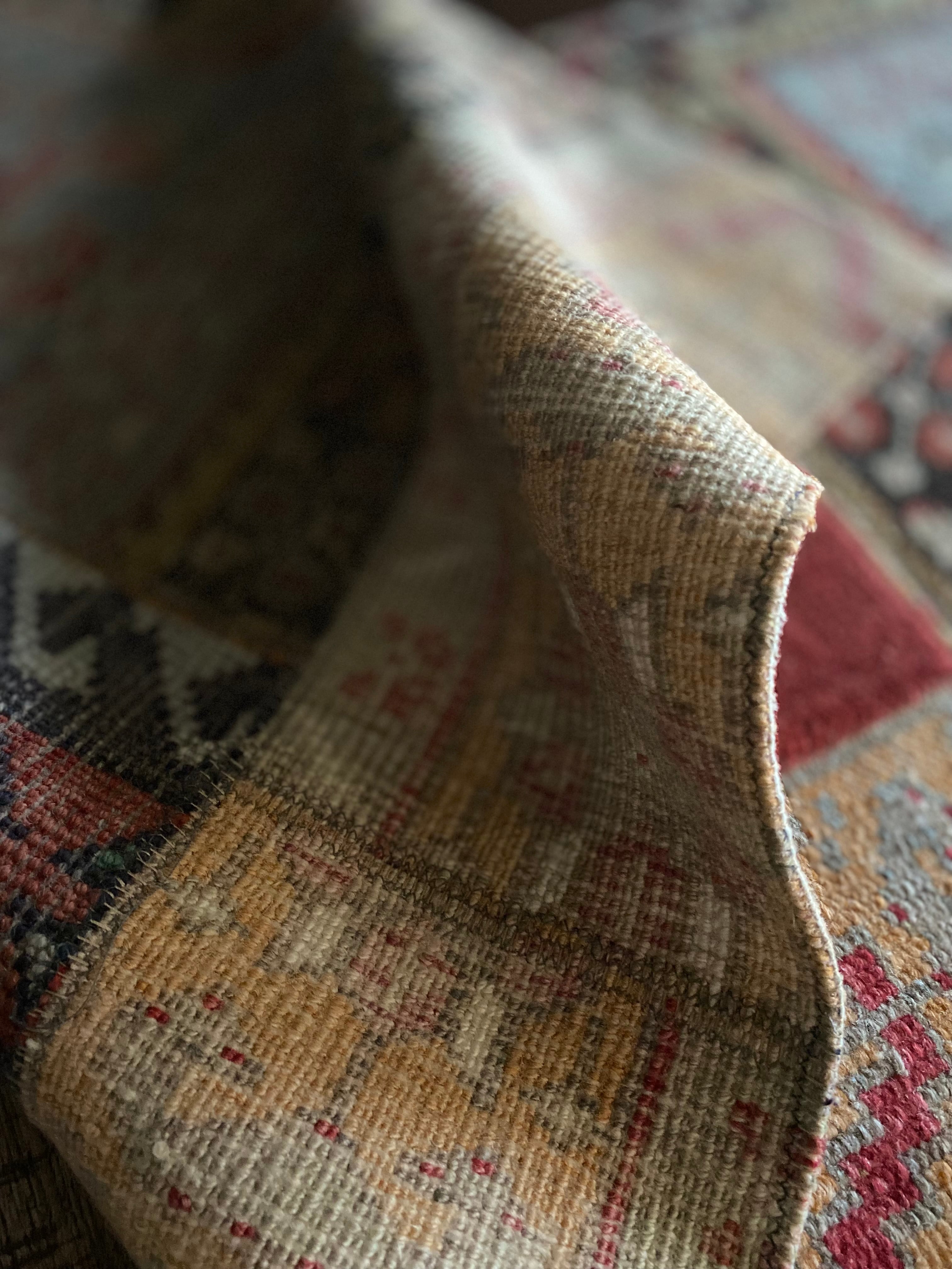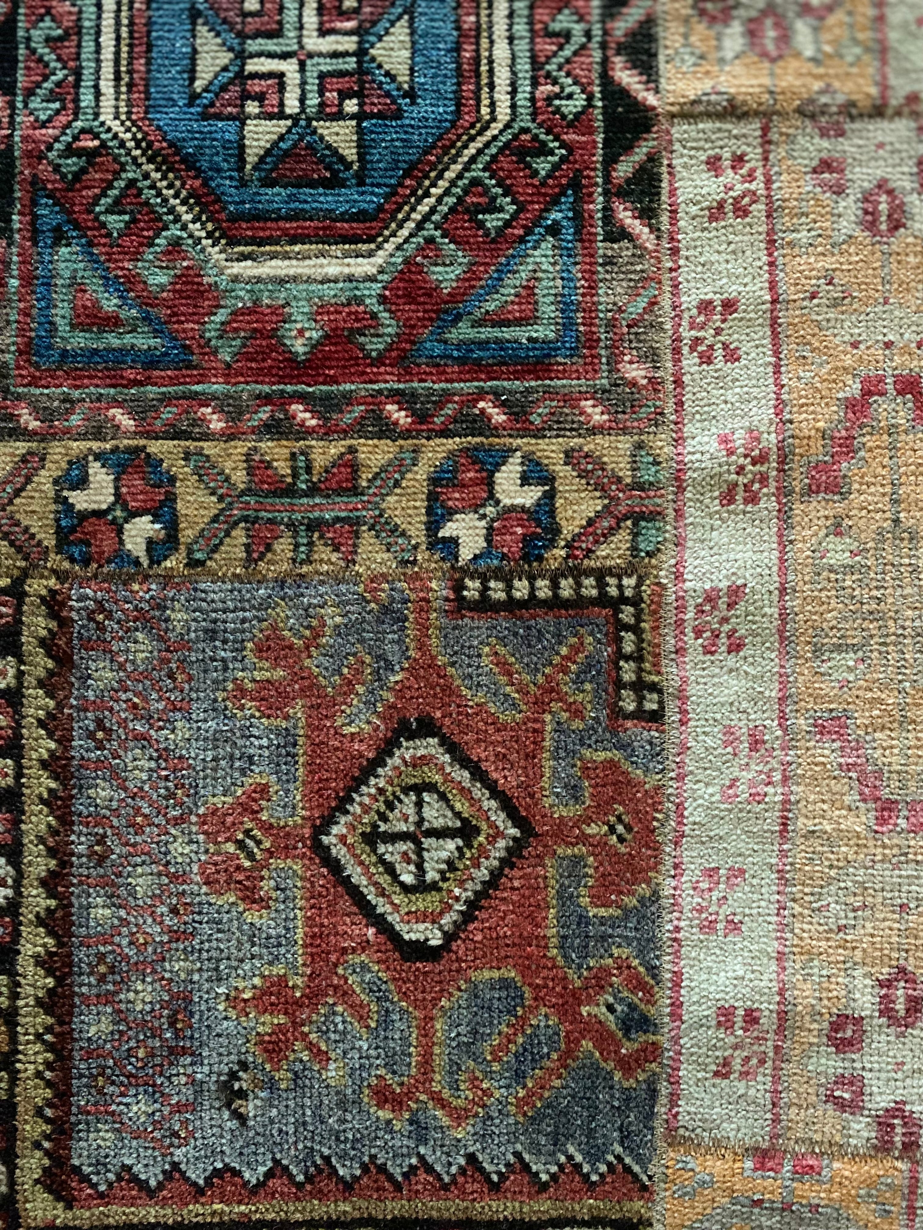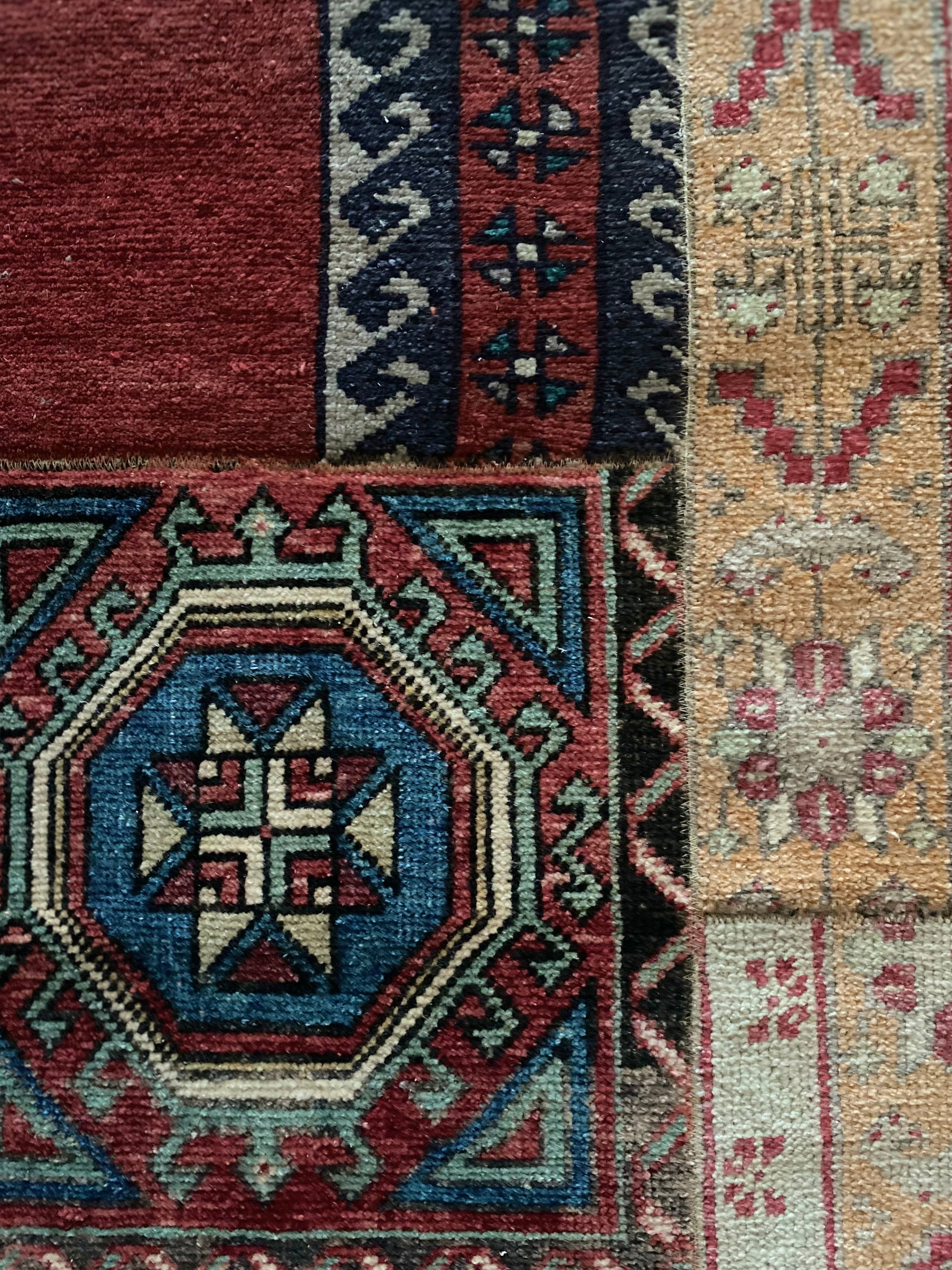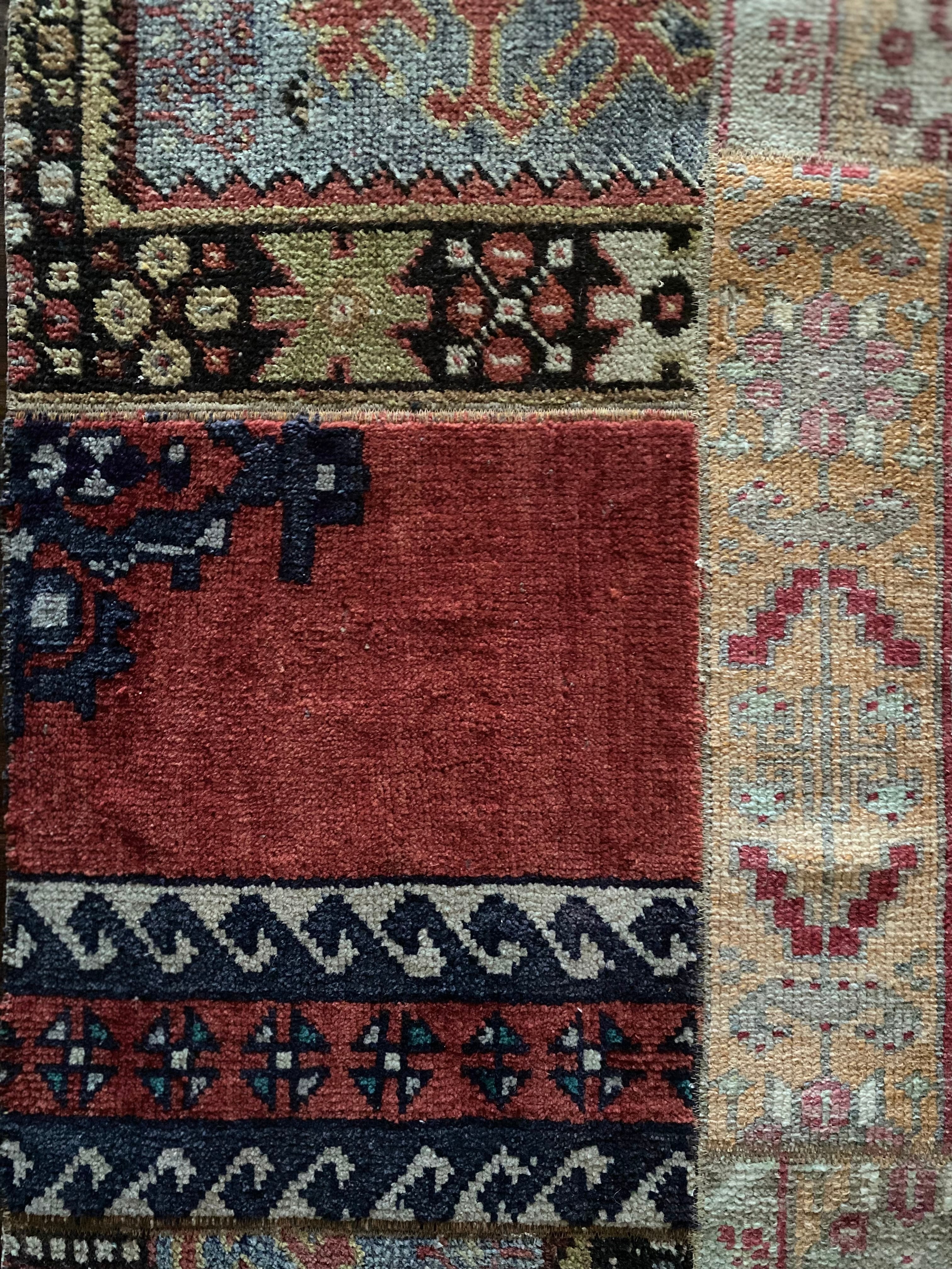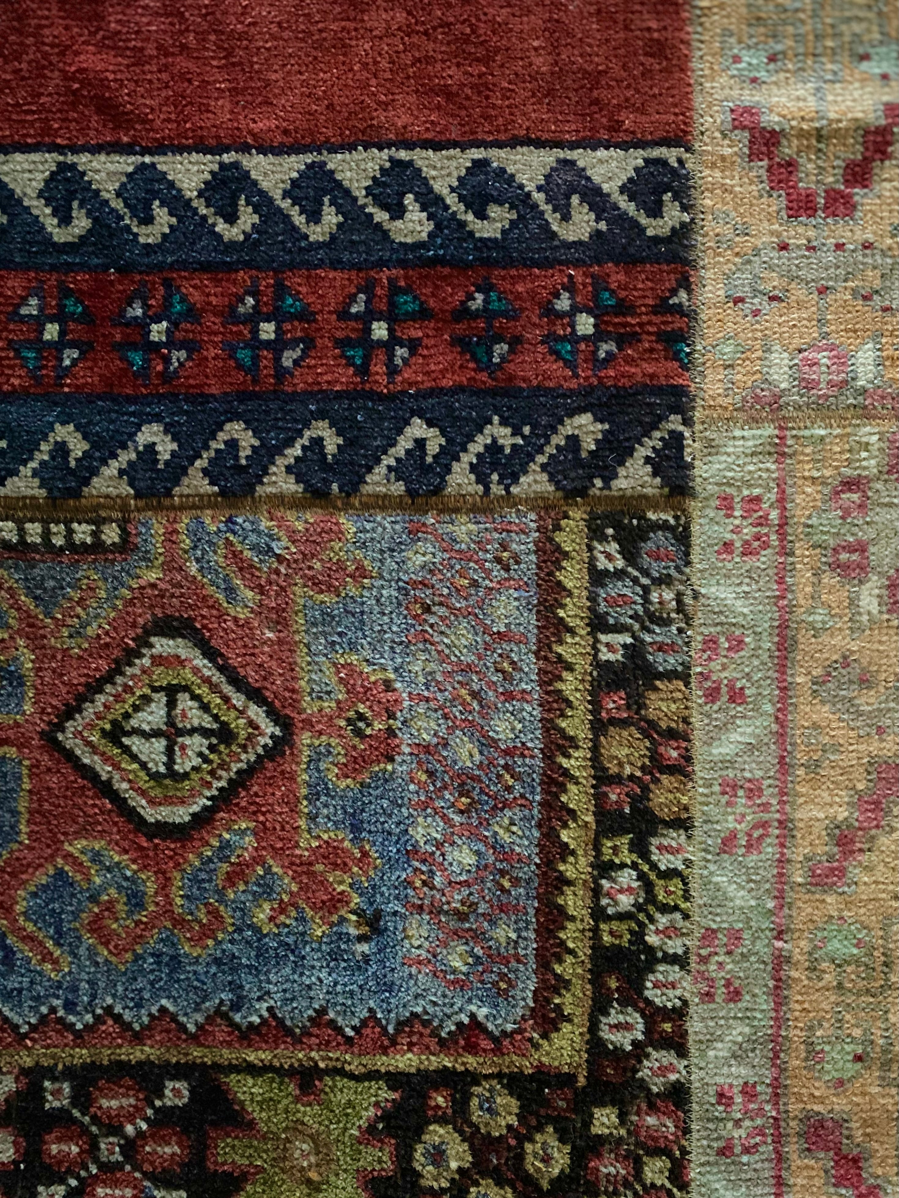 異なるラグを組み合わせて生まれた、パッチワークのランナーラグ。