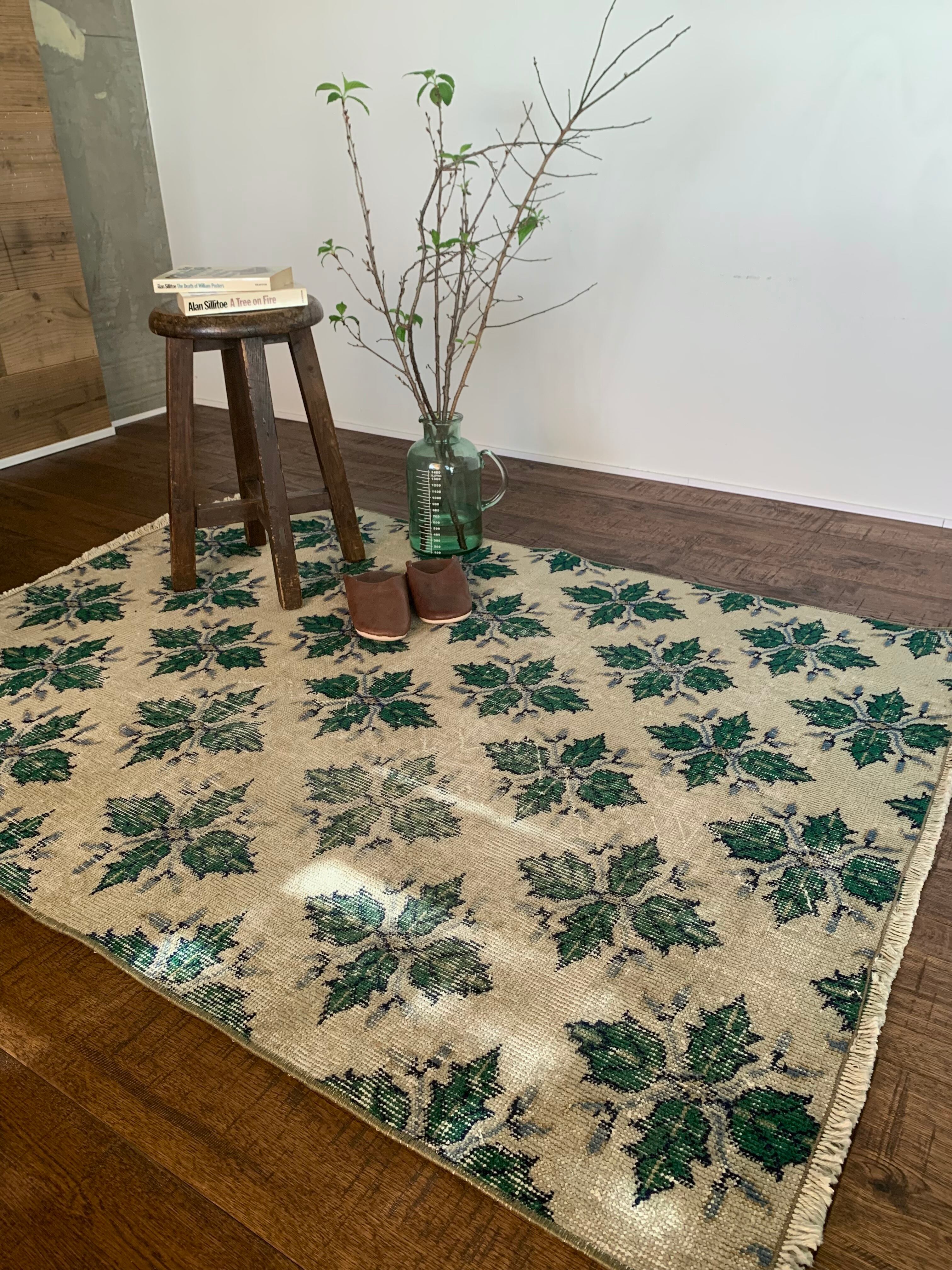 リーフ柄 トルコオーバーダイヴィンテージラグ