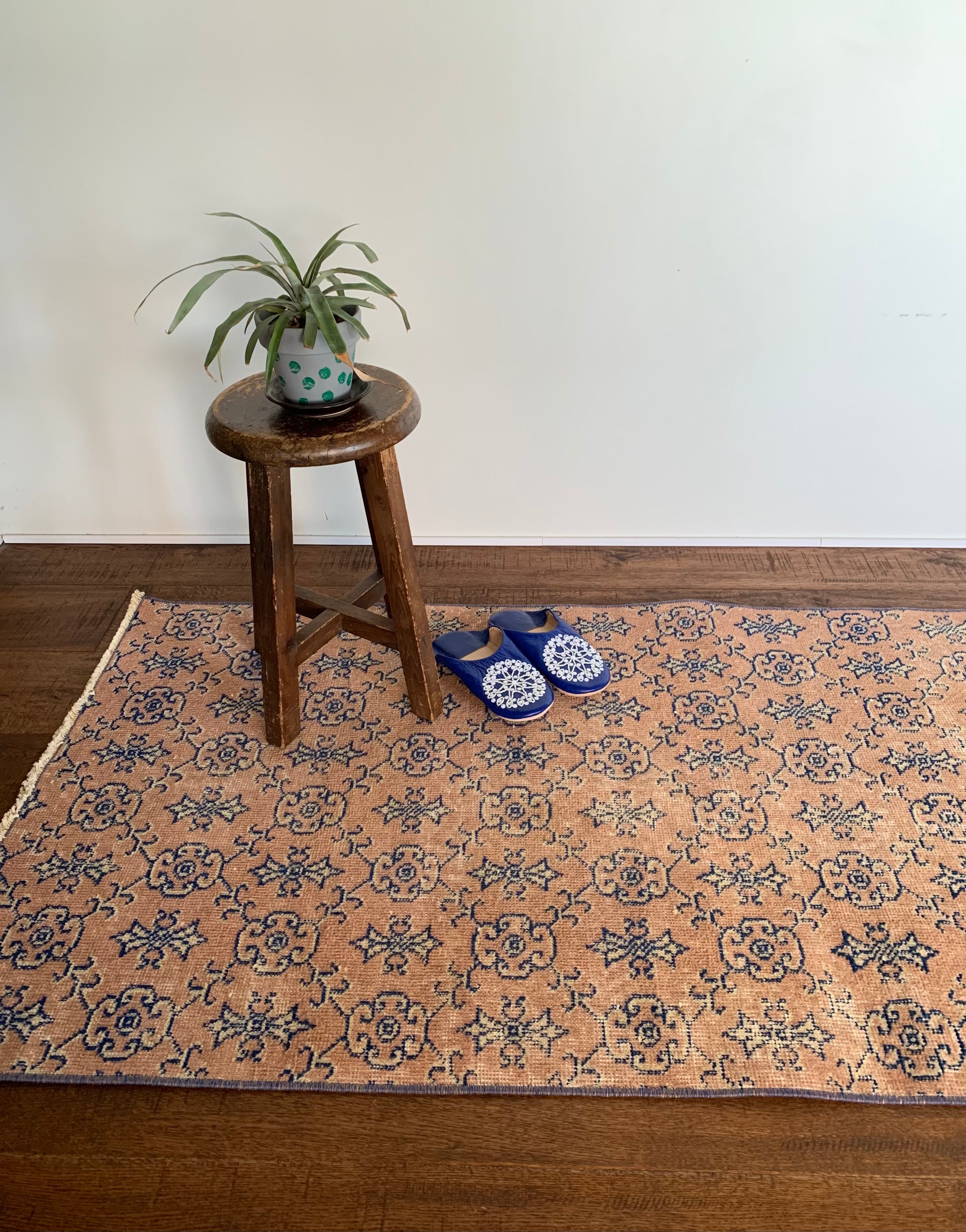✔︎手織りのラグの為、歪みや、カスレ、糸の飛び出し修復などありますがどれもヴィンテージならではの風合いです。どのラグにも見られますので返品の対象にはなりません。