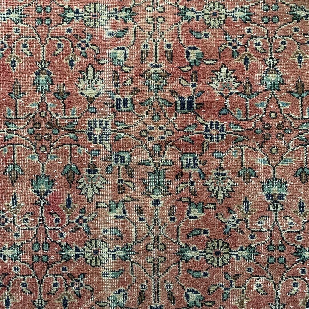 くすみピンク花柄 ヴィンテージラグ オーバーダイ