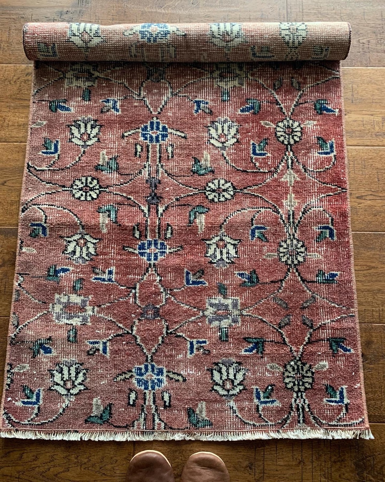 ✔︎手織りのラグの為、歪みや、カスレ、糸の飛び出し修復などありますがどれもヴィンテージならではの風合いです。どのラグにも見られますので返品の対象にはなりません。