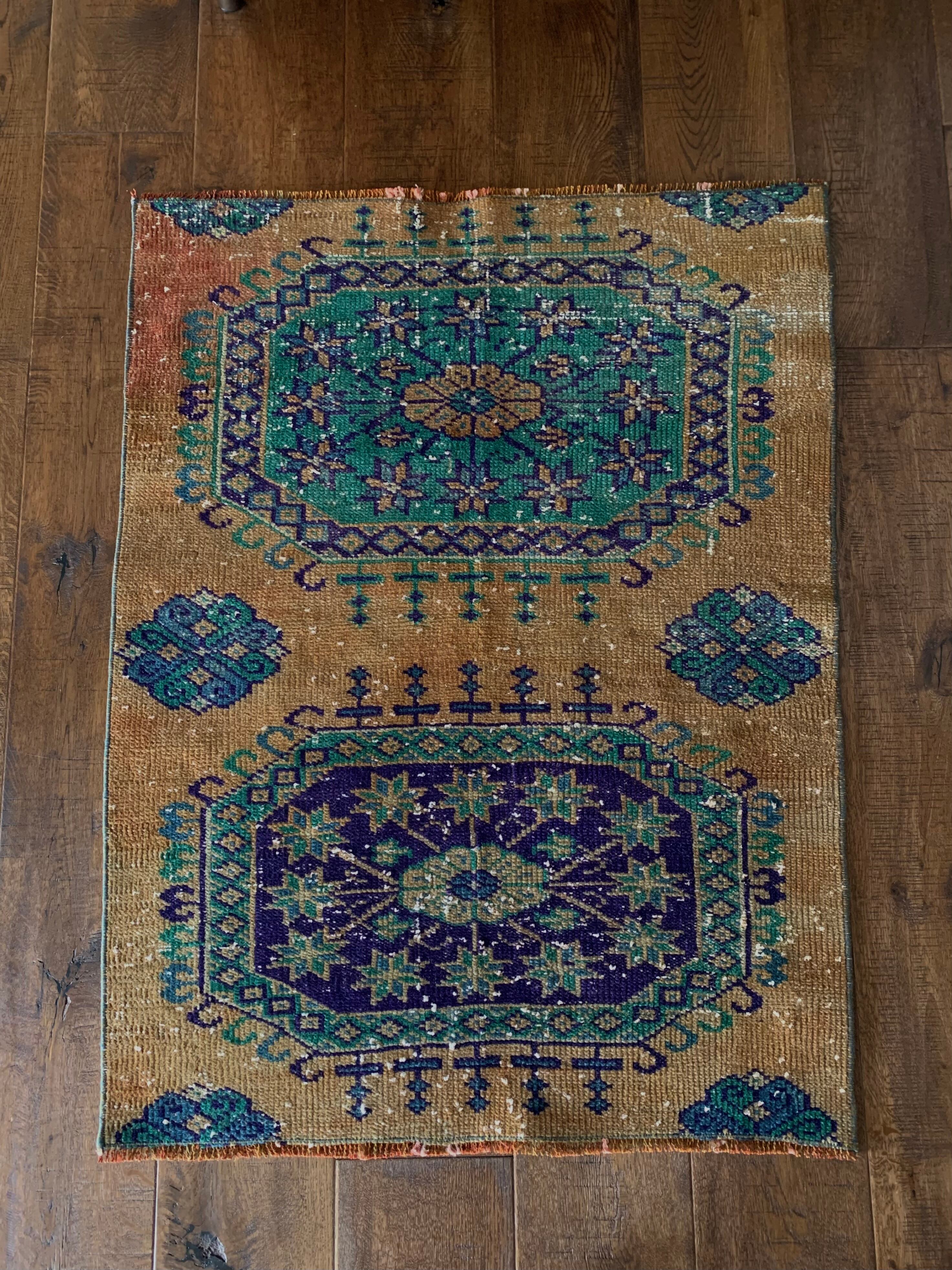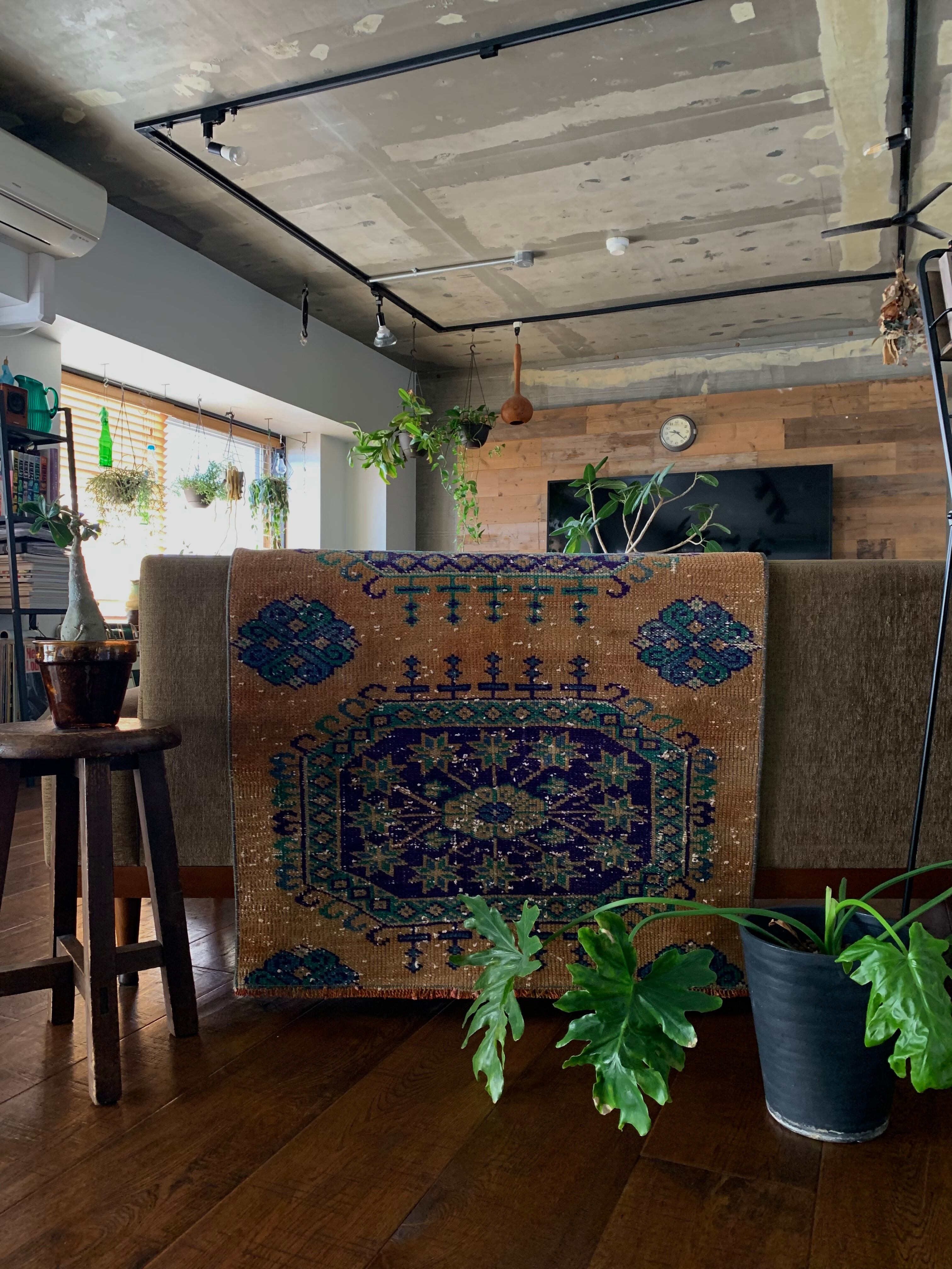 ✔︎手織りのヴィンテージラグの為、撓み、カスレ,糸の飛び出し修復などありますがどれもヴィンテージならではの風合いです。どのラグにも見られますので