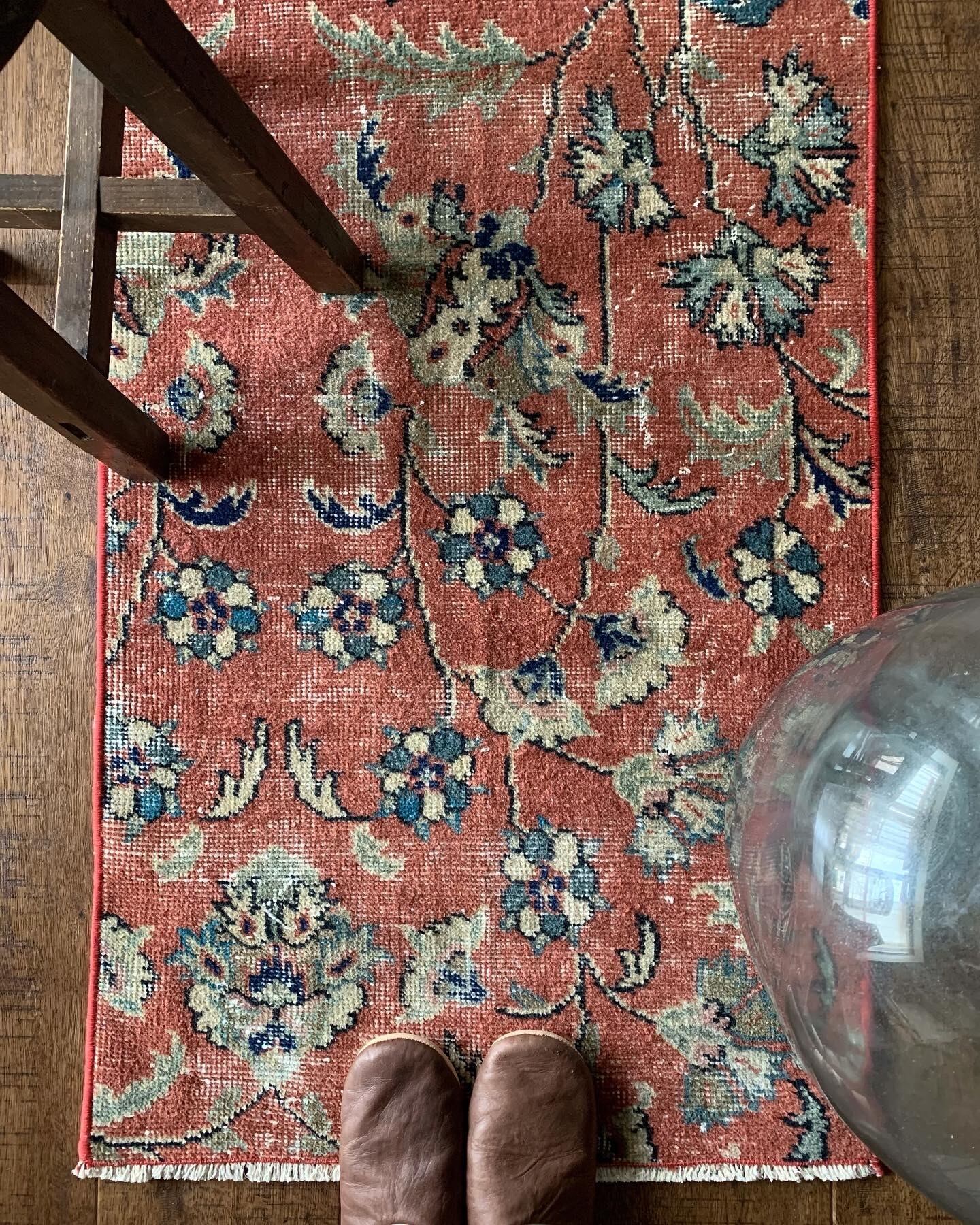 ✔︎手織りのヴィンテージラグの為、撓み、カスレ,糸の飛び出し修復などありますがどれもヴィンテージならではの風合いです。どのラグにも見られますので