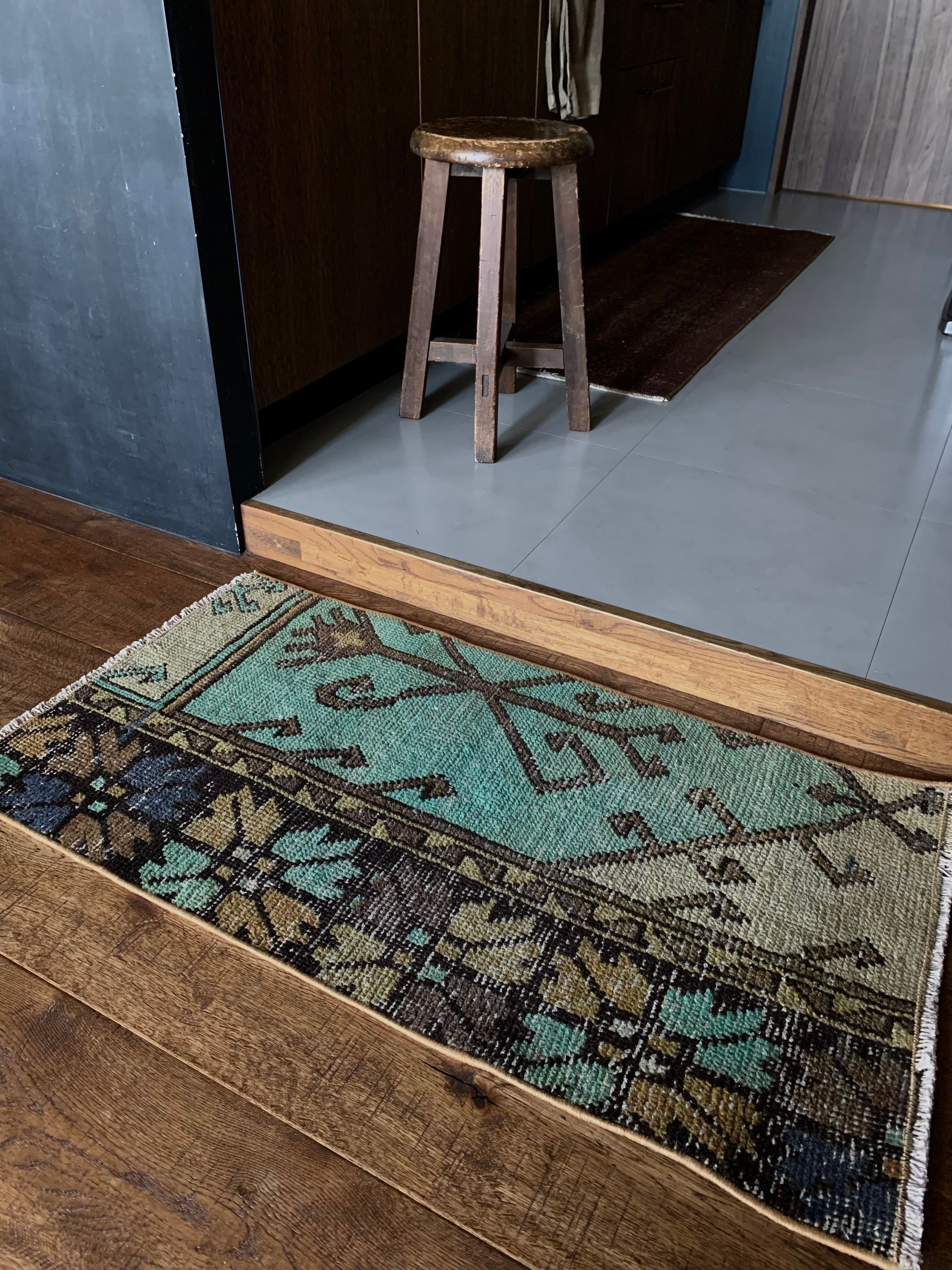 ✔︎手織りのヴィンテージラグの為、撓み、カスレ,糸の飛び出し修復などありますがどれもヴィンテージならではの風合いです。どのラグにも見られますので