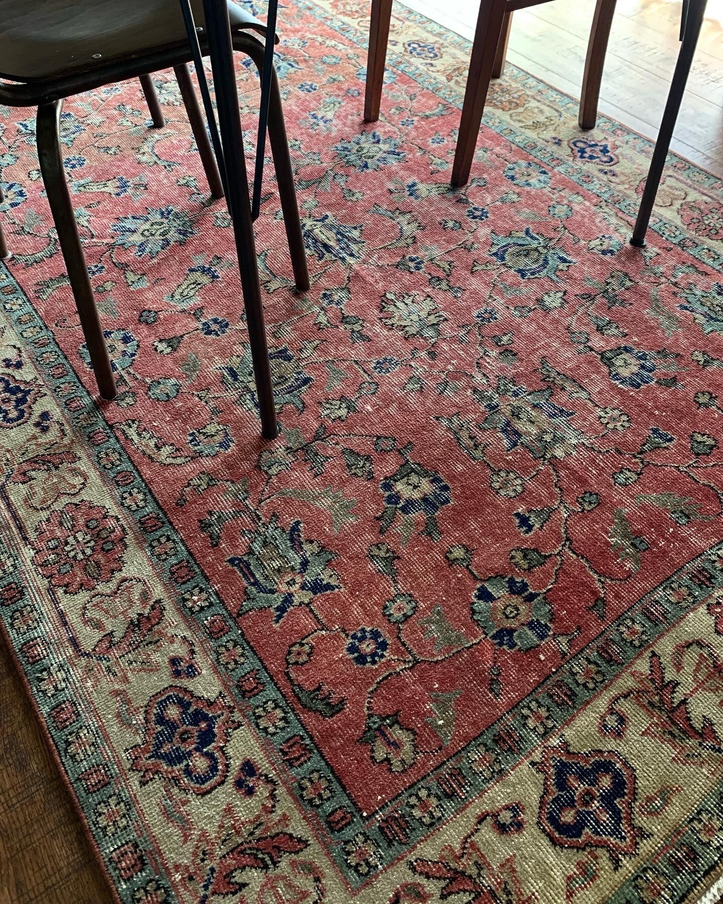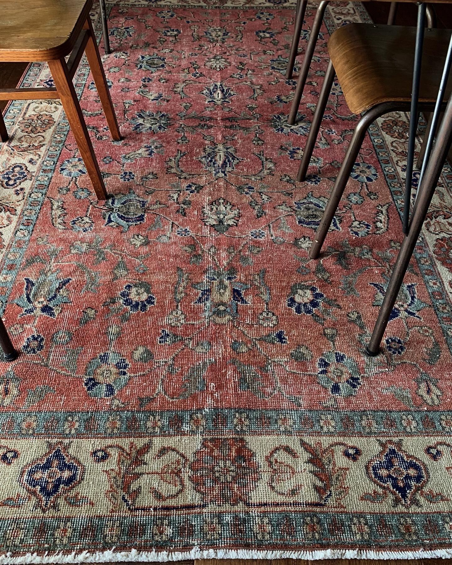 ✔︎手織りのヴィンテージラグの為、撓み、カスレ,糸の飛び出し修復などありますがどれもヴィンテージならではの風合いです。