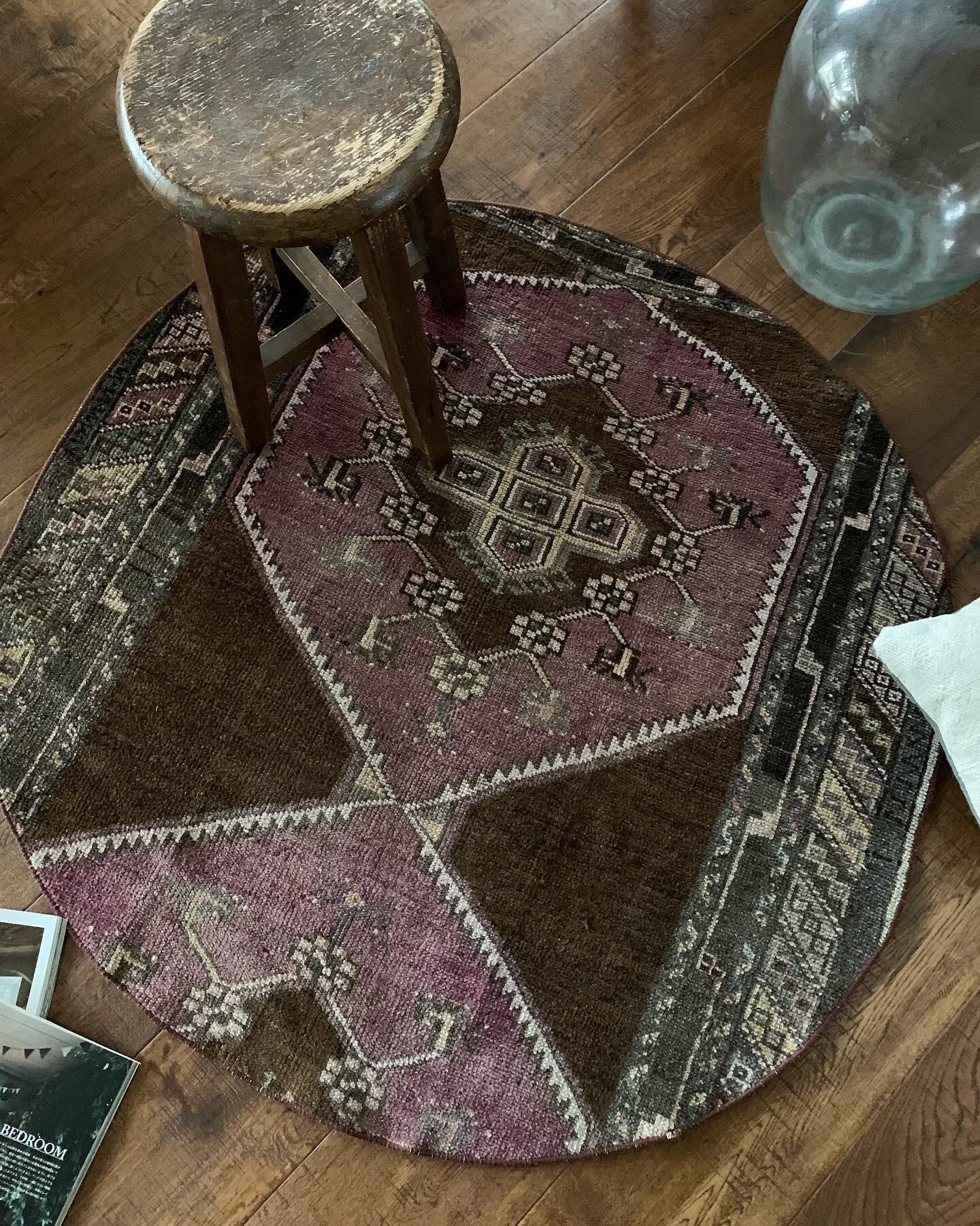 ブラウンとくすんだパープルの色味がとにかく素敵。くったり柔らかめのラグです。