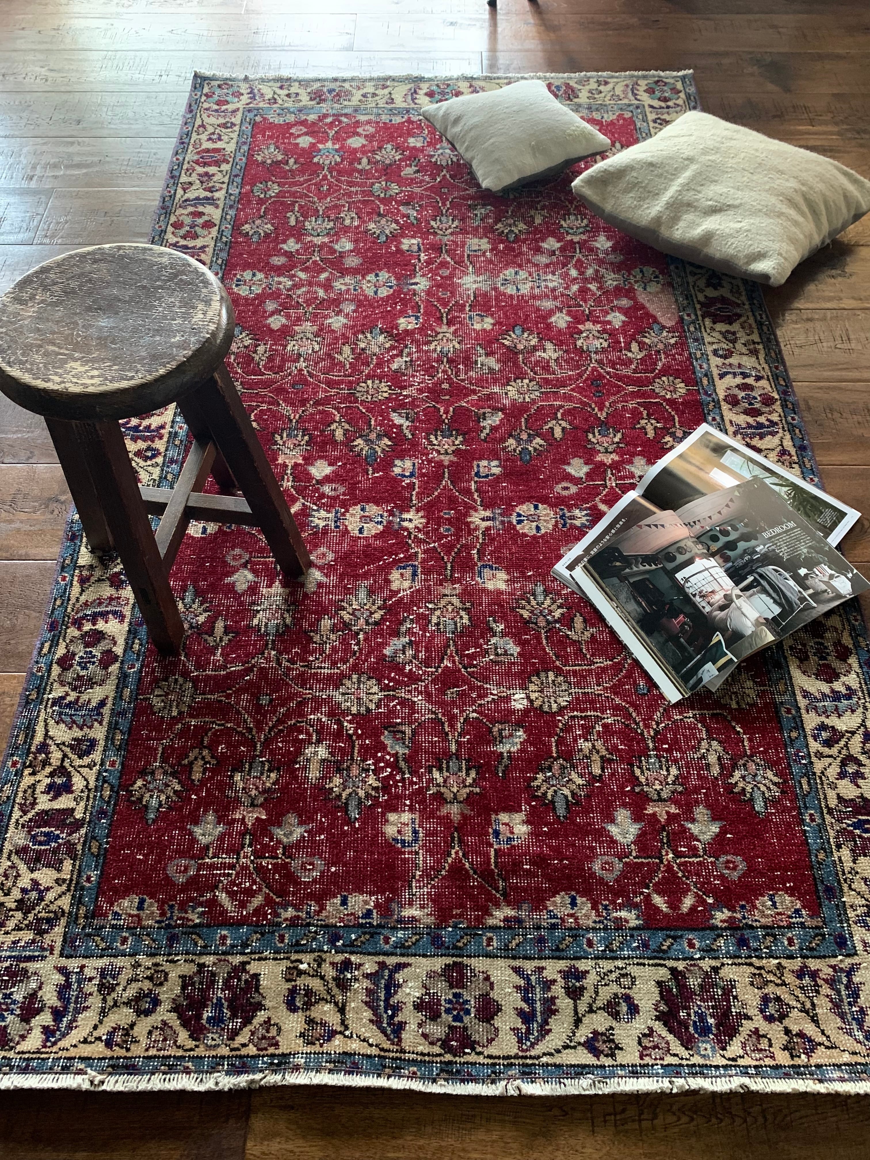 ✔︎オーバーダイヴィンテージラグとは時が経てば経年劣化で色が薄れ本来の魅力が失われたラグにブリーチ、シャーリング(毛足カット)後染めなどを施し伝統的なラグの良さを残しながらセカンドライフを与えた味のあるラグの事を言います。