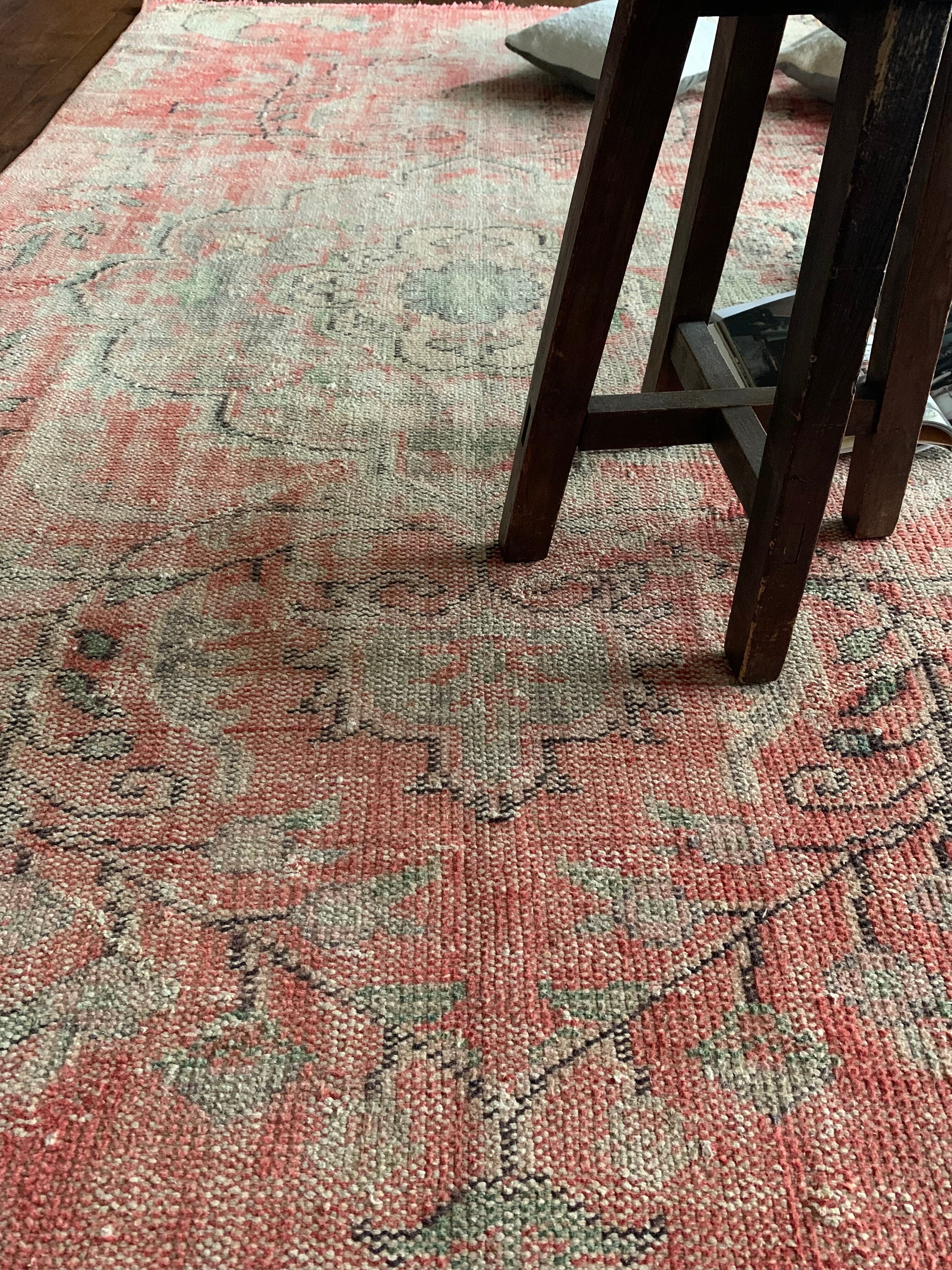 ヴィンテージ感じたっぷりの擦れ擦れ朱赤ラグ。このカスレ具合が堪らないんです。ヴィンテージ好きさんに是非オススメな1枚です。