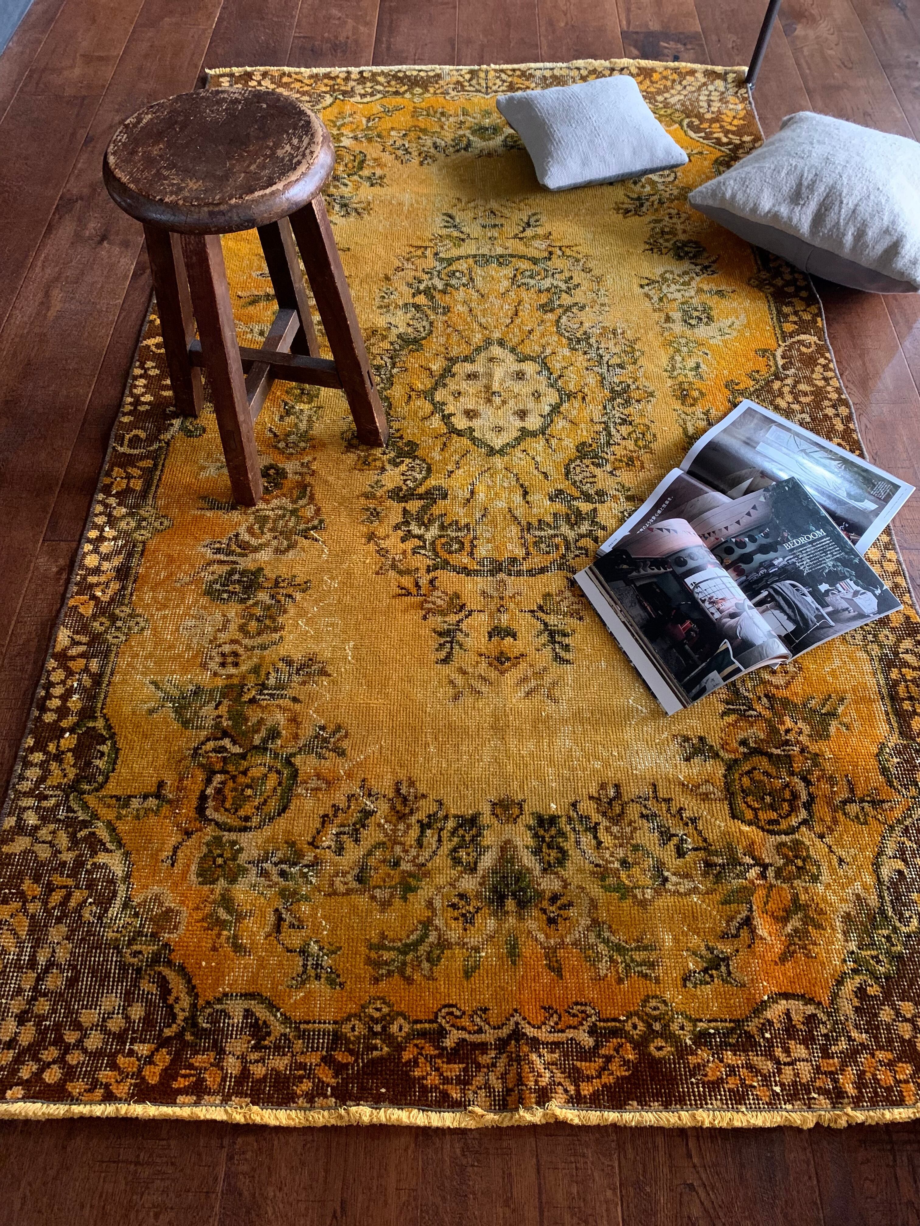 ✔︎オーバーダイヴィンテージラグとは時が経てば経年劣化で色が薄れ本来の魅力が失われたラグにブリーチ、シャーリング(毛足カット)後染めなどを施し伝統的なラグの良さを残しながらセカンドライフを与えた味のあるラグの事を言います。