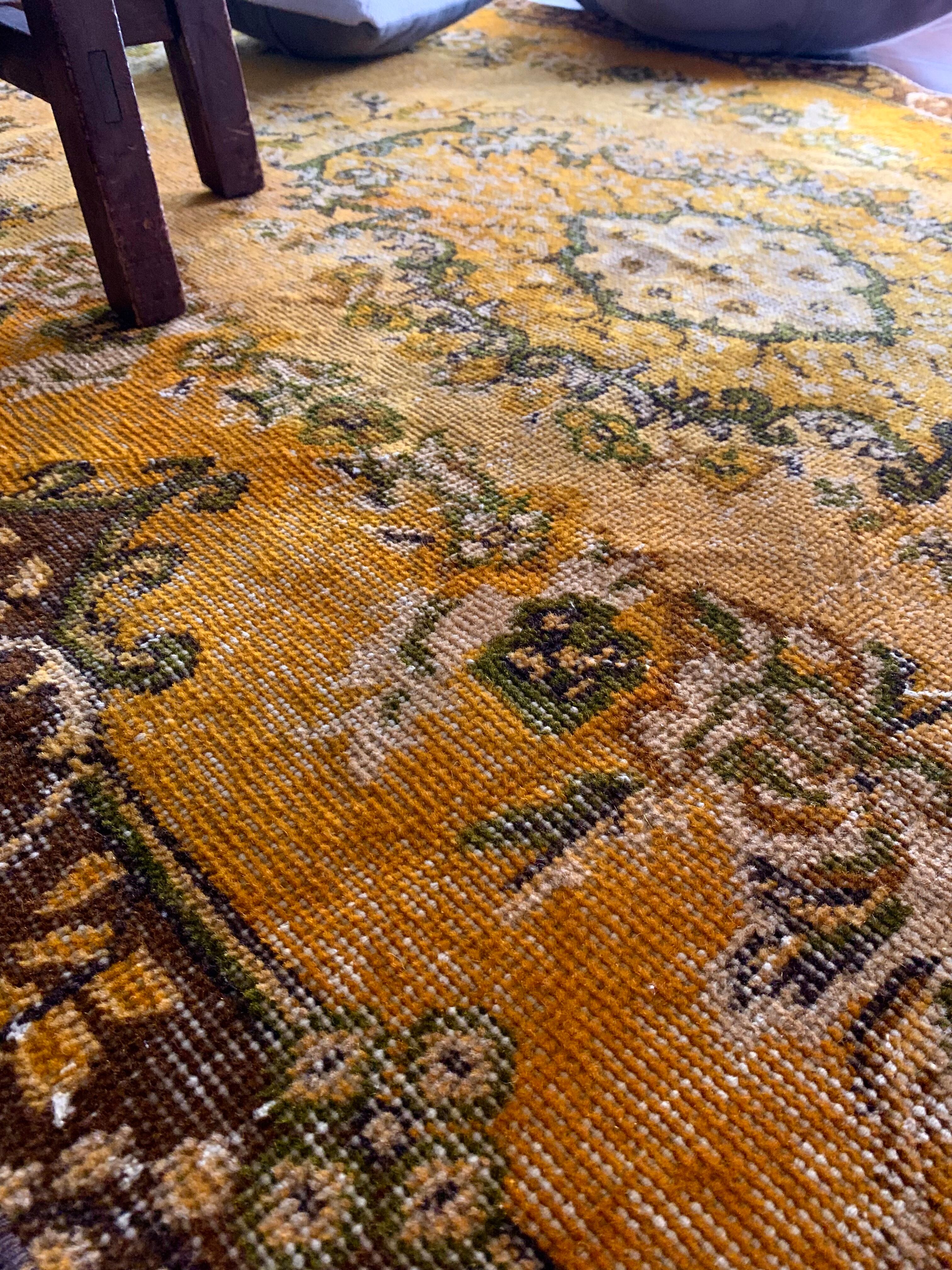 ✔︎手織りのヴィンテージラグの為、撓み、カスレ,糸の飛び出し修復などありますがどれもヴィンテージならではの風合いです。