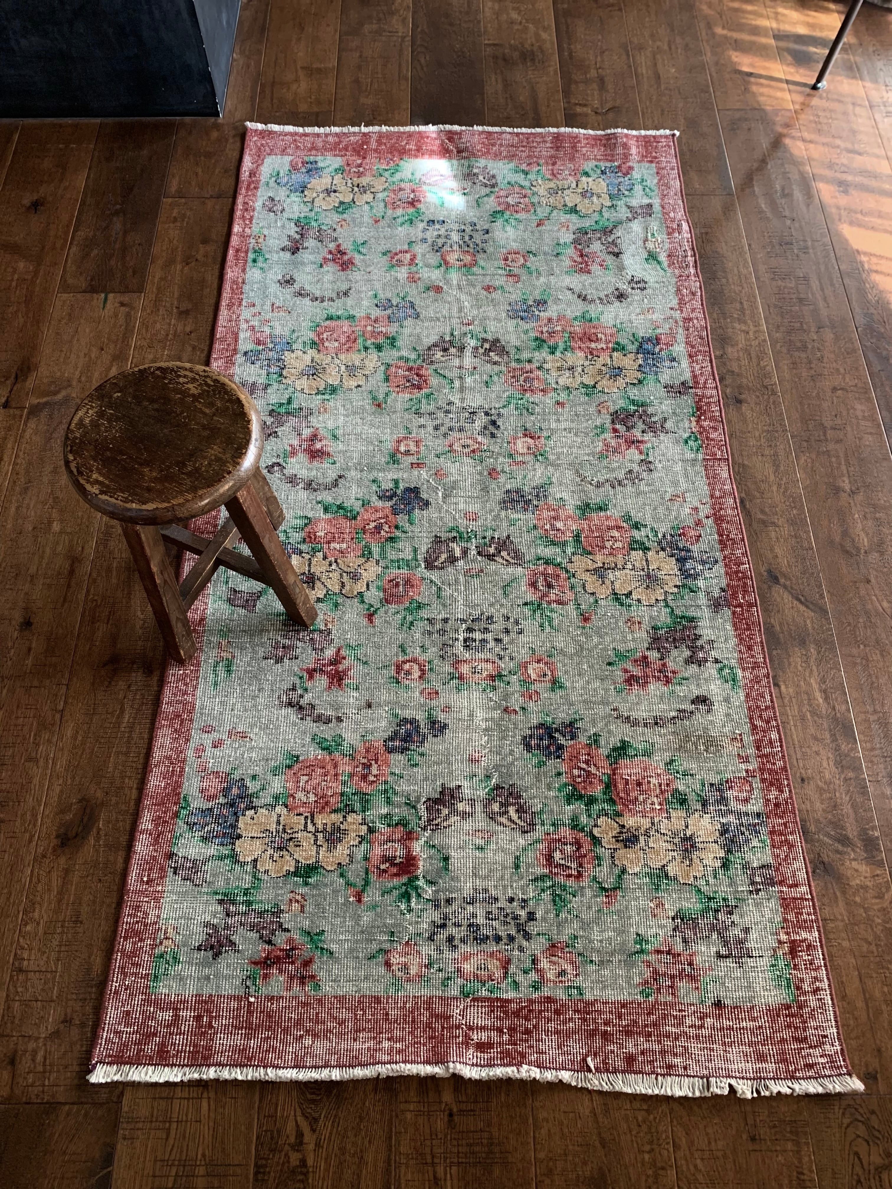 グレー花柄ラグ ヴィンテージラグ