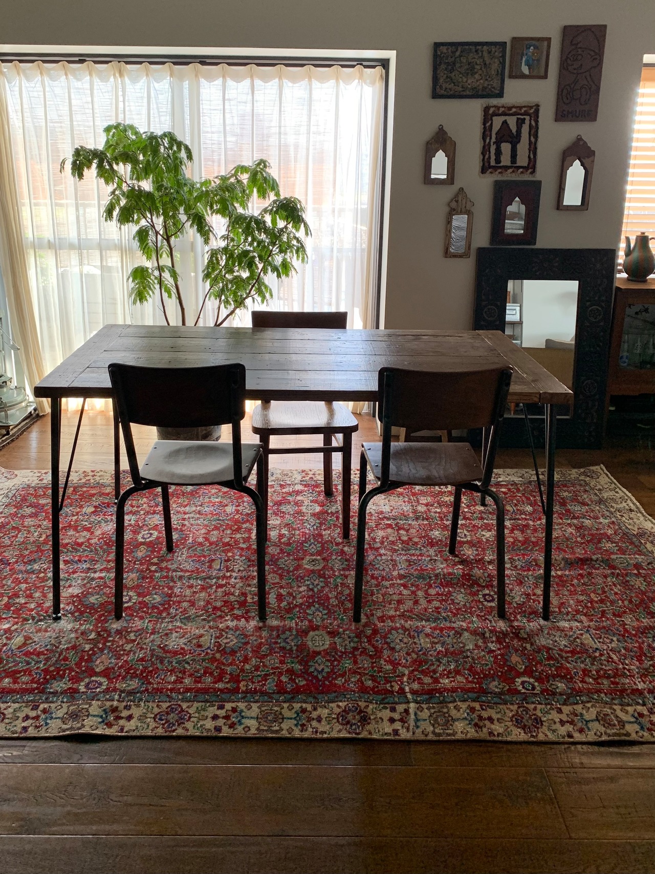✔︎手織りのヴィンテージラグの為、撓み、カスレ,糸の飛び出し修復などありますがどれもヴィンテージならではの風合いです。