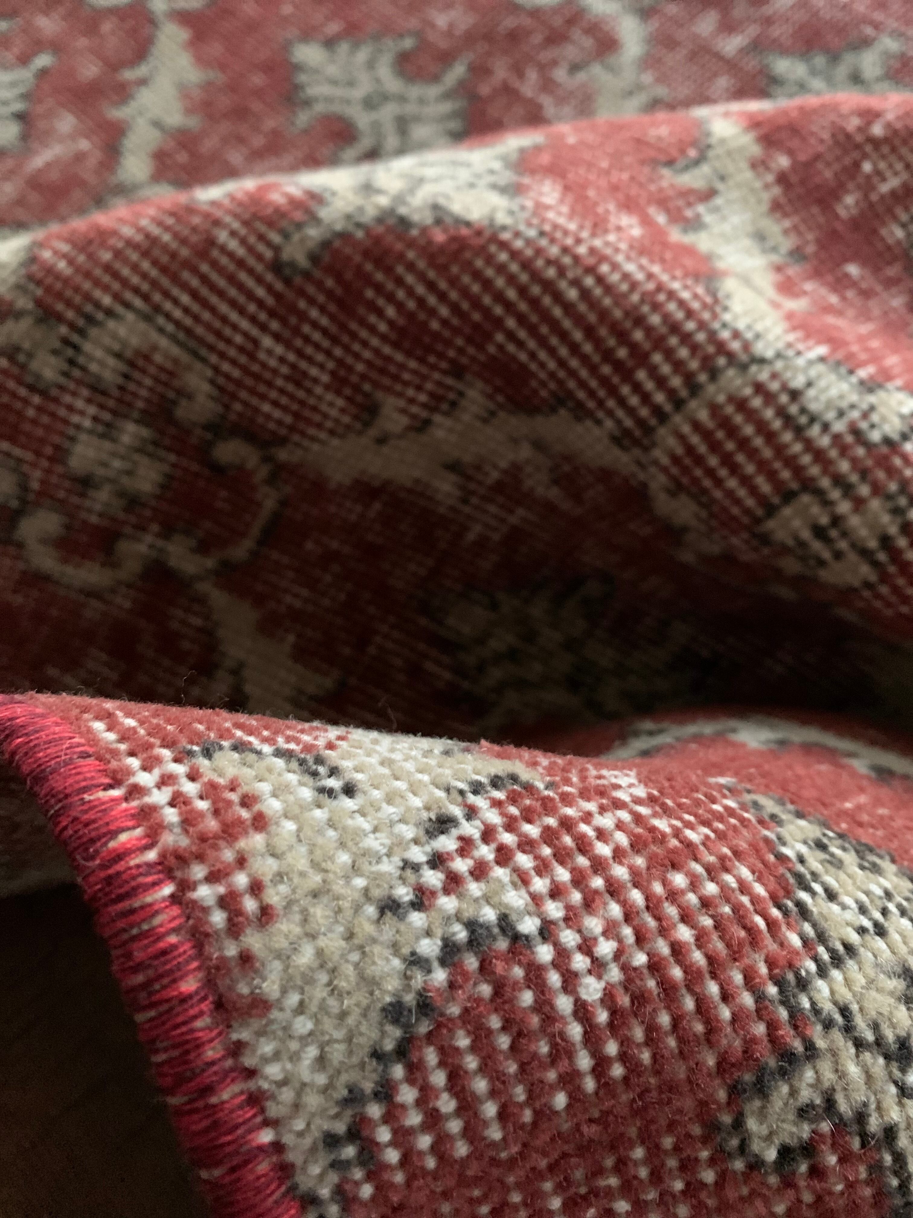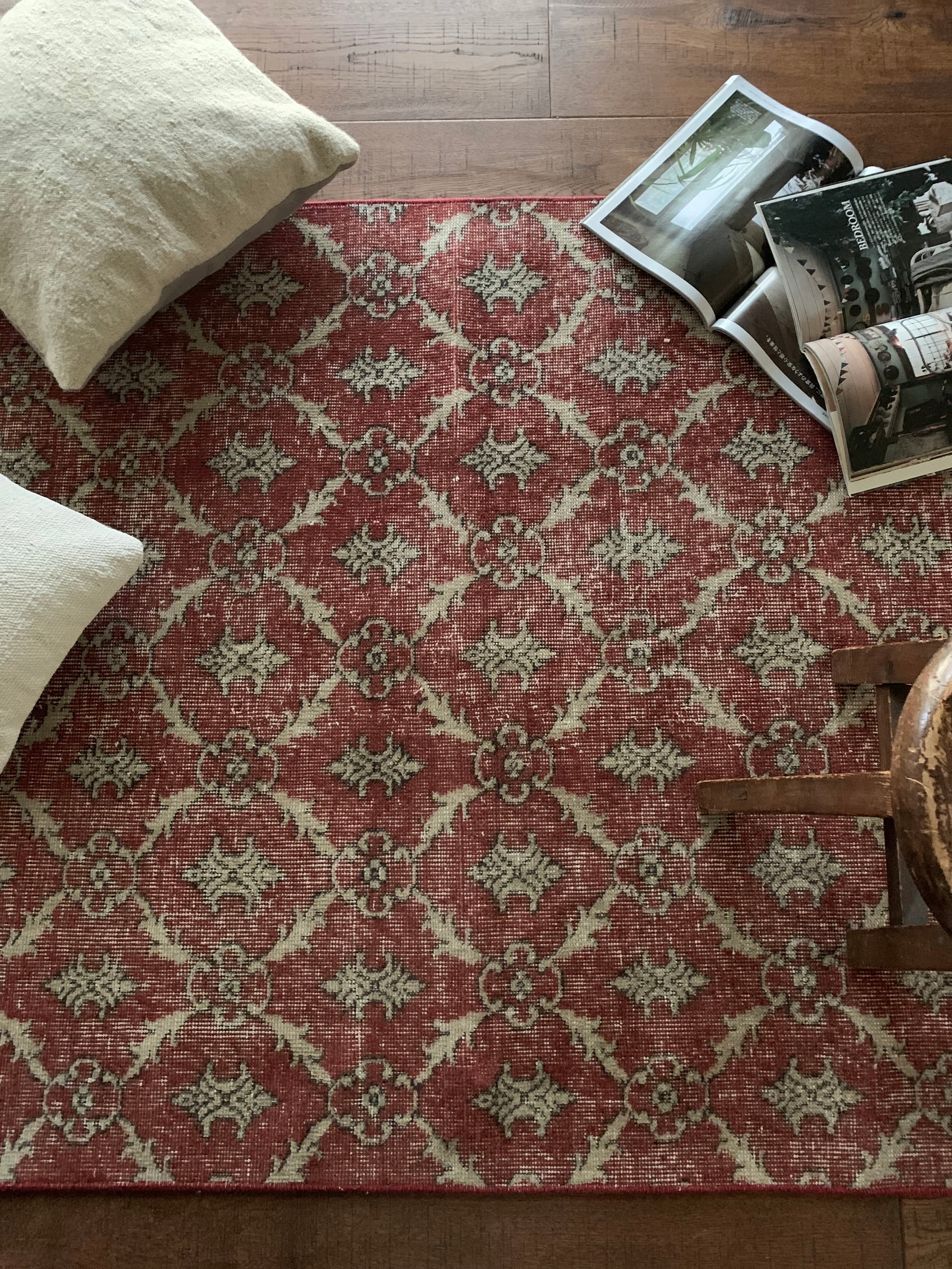 ✔︎ 入荷後天日干し、水拭き、掃除機を数回かけておりますがどうしても細かな砂が出てくる場合がございます。砂の多い国で土足文化の為、洗浄しても中に入り込んだ砂が出てきます。敷いたラグ下をたまに掃除機をかけて頂くと気にならなくなります。