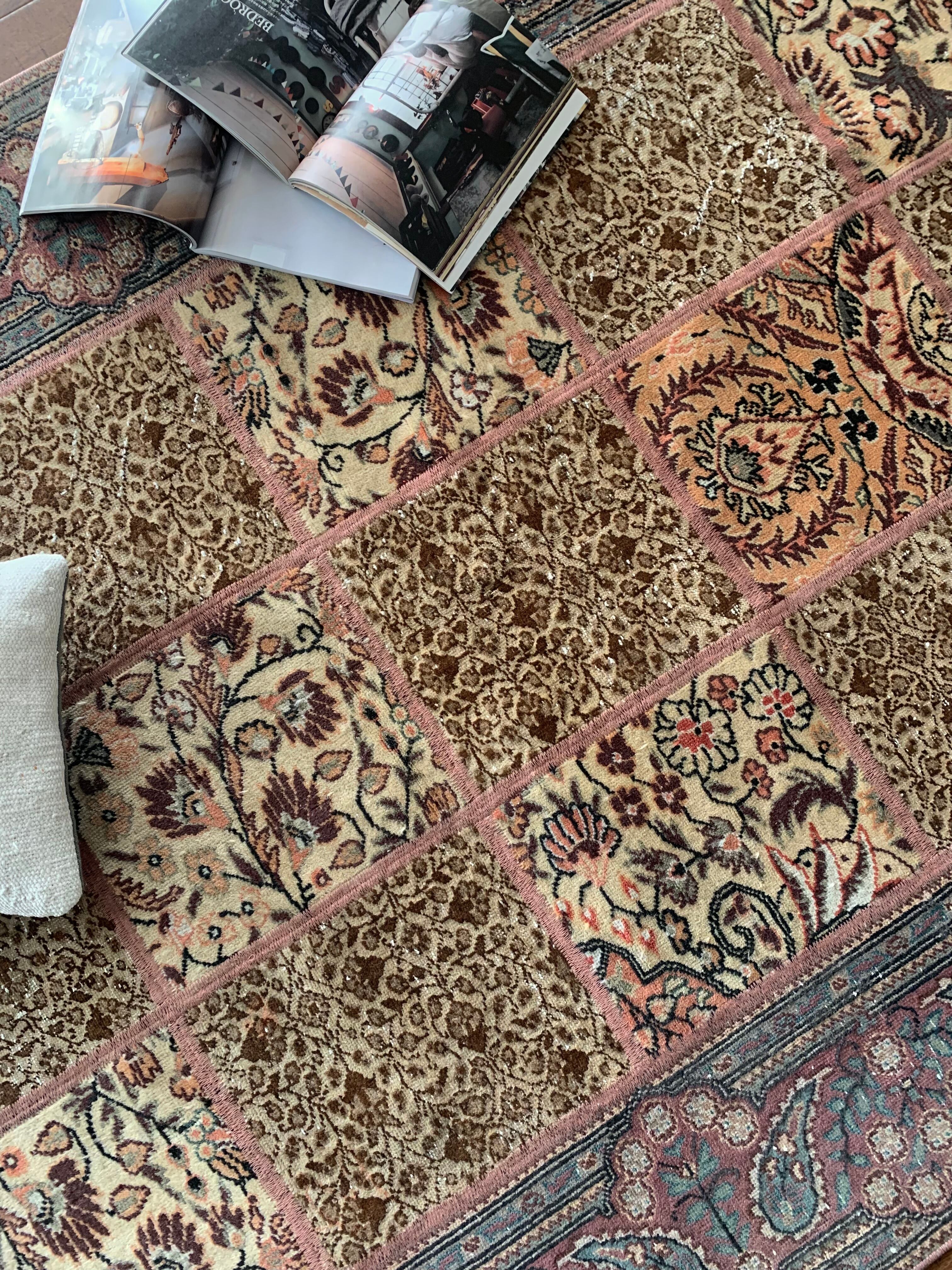 ヴィンテージラグを大切にするトルコの職人が、状態の良い部分のみ使用して作るパッチワークラグ。