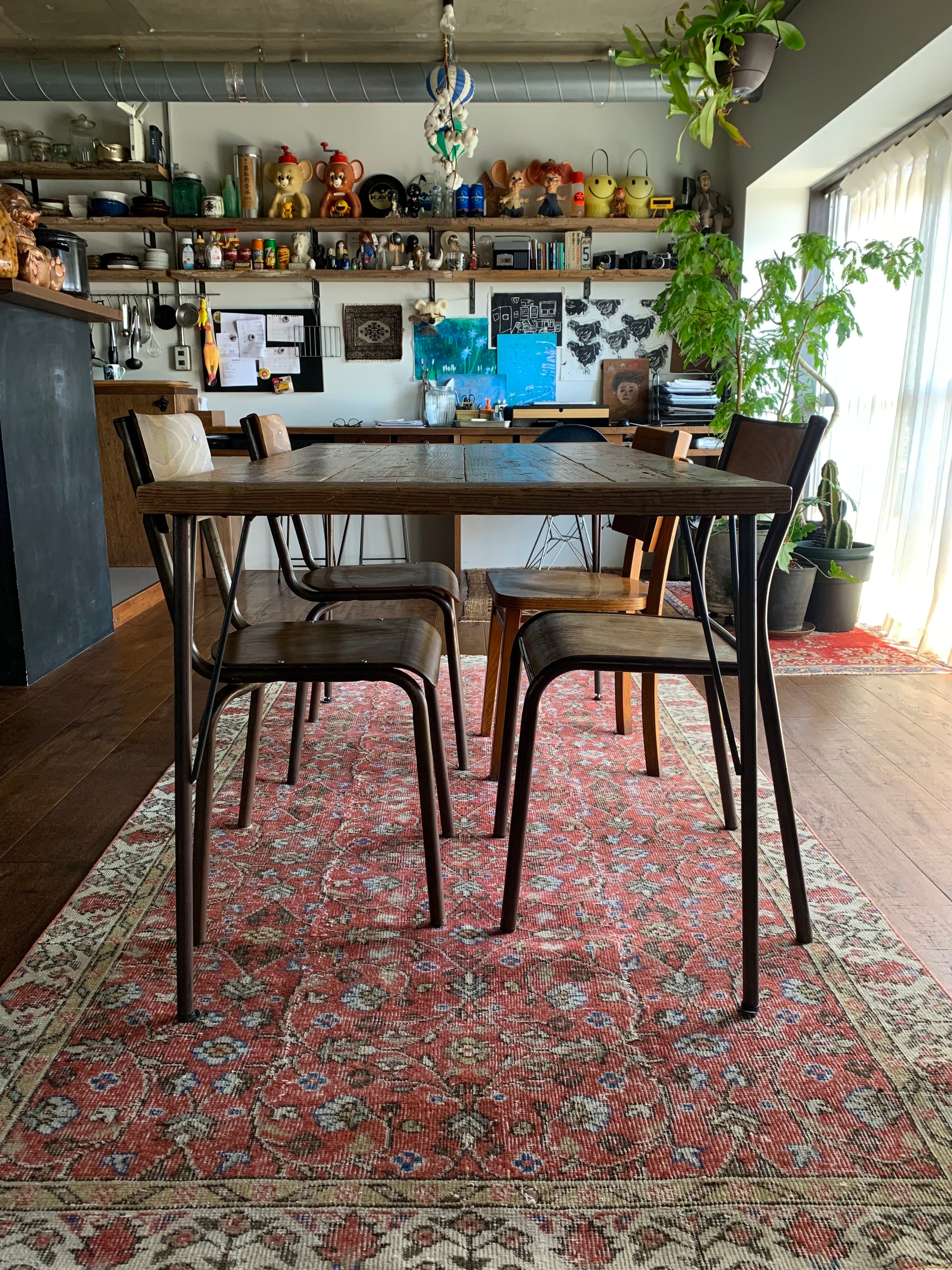✔︎手織りのヴィンテージラグの為、撓み、カスレ,糸の飛び出し修復などありますがどれもヴィンテージならではの風合いです。