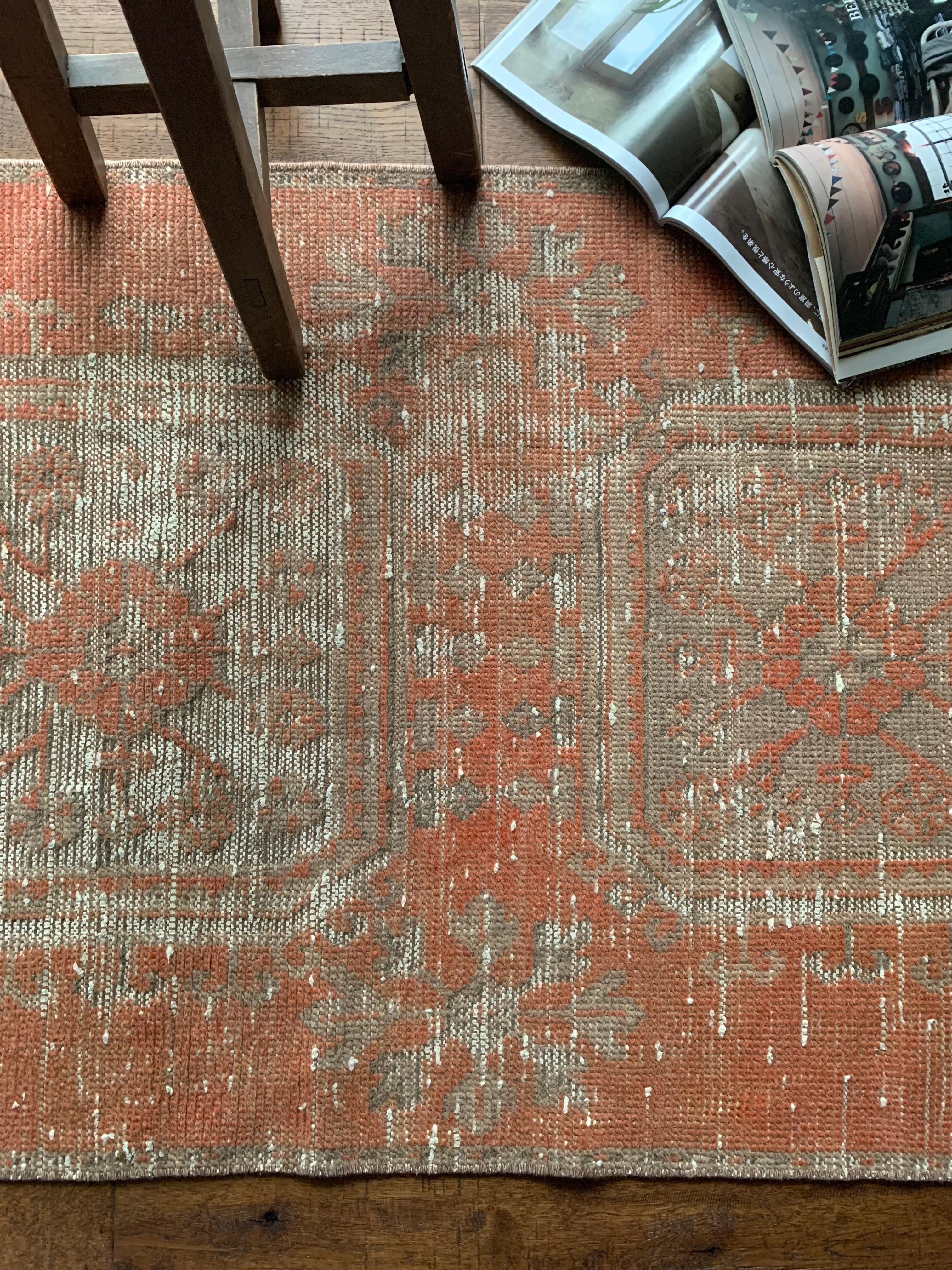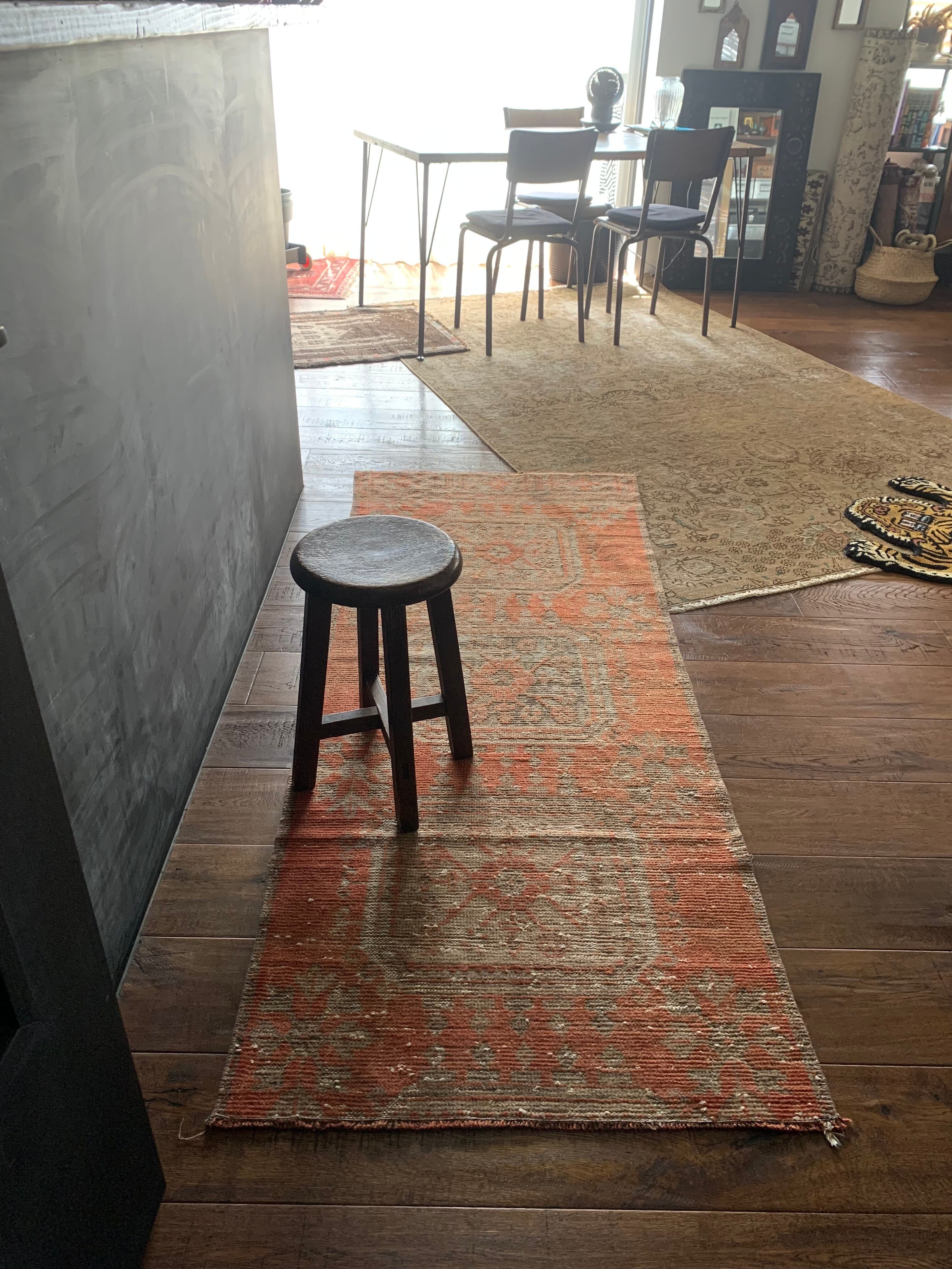✔︎手織りのヴィンテージラグの為、撓み、カスレ,糸の飛び出し修復などありますがどれもヴィンテージならではの風合いです。