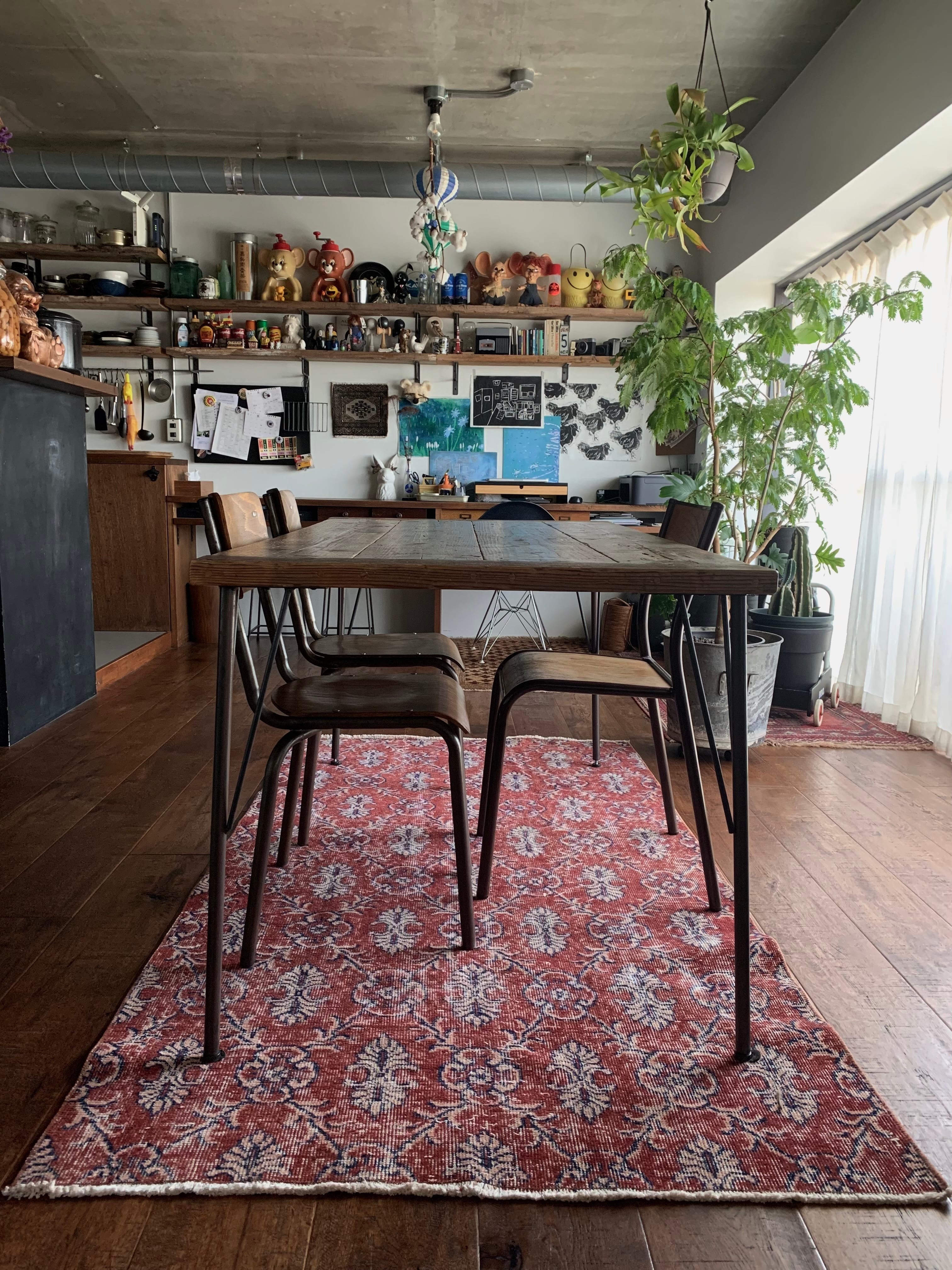 ✔︎手織りのヴィンテージラグの為、撓み、カスレ,糸の飛び出し修復などありますがどれもヴィンテージならではの風合いです。