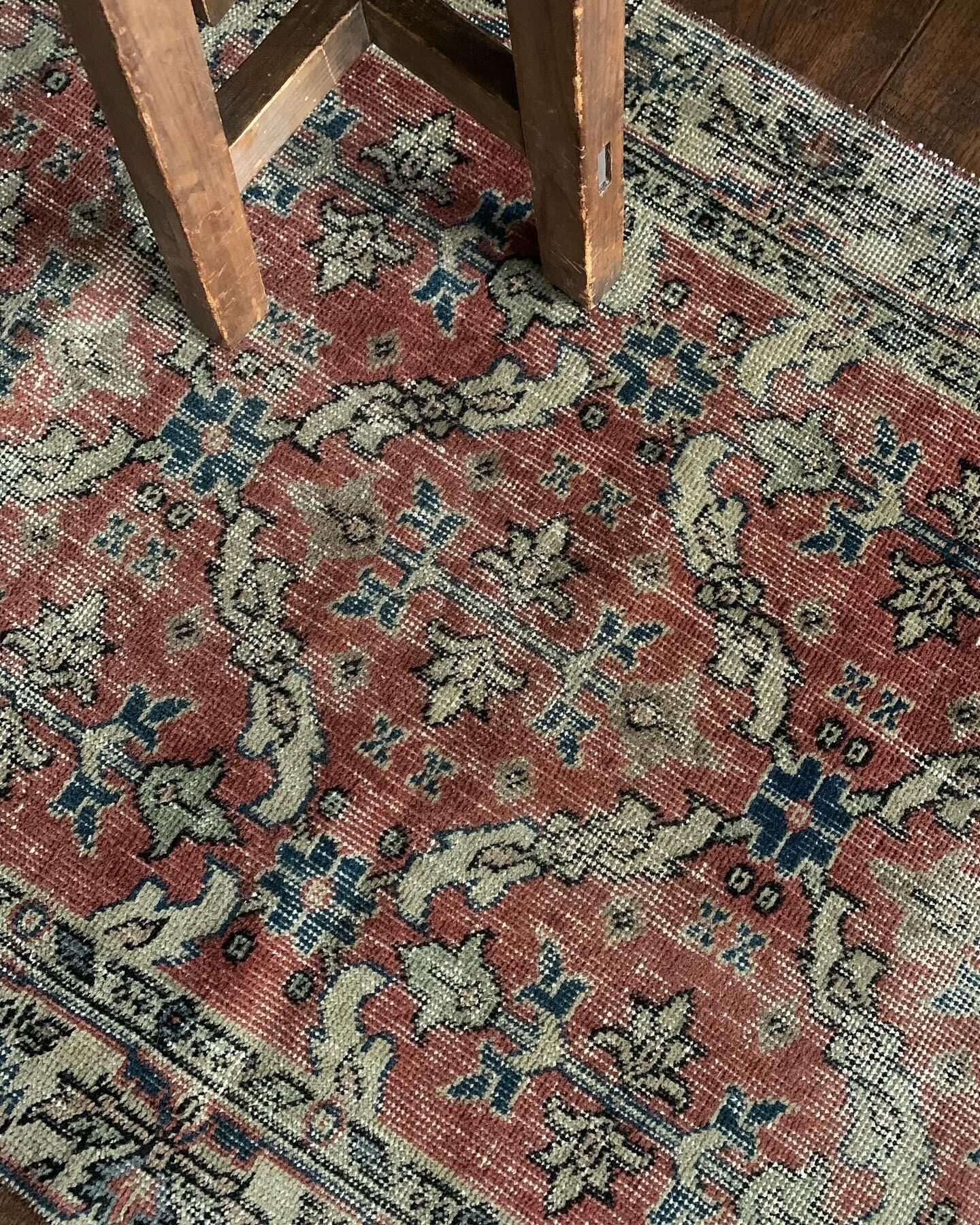 ✔︎手織りのヴィンテージラグの為、撓み、カスレ,糸の飛び出し修復などありますがどれもヴィンテージならではの風合いです。