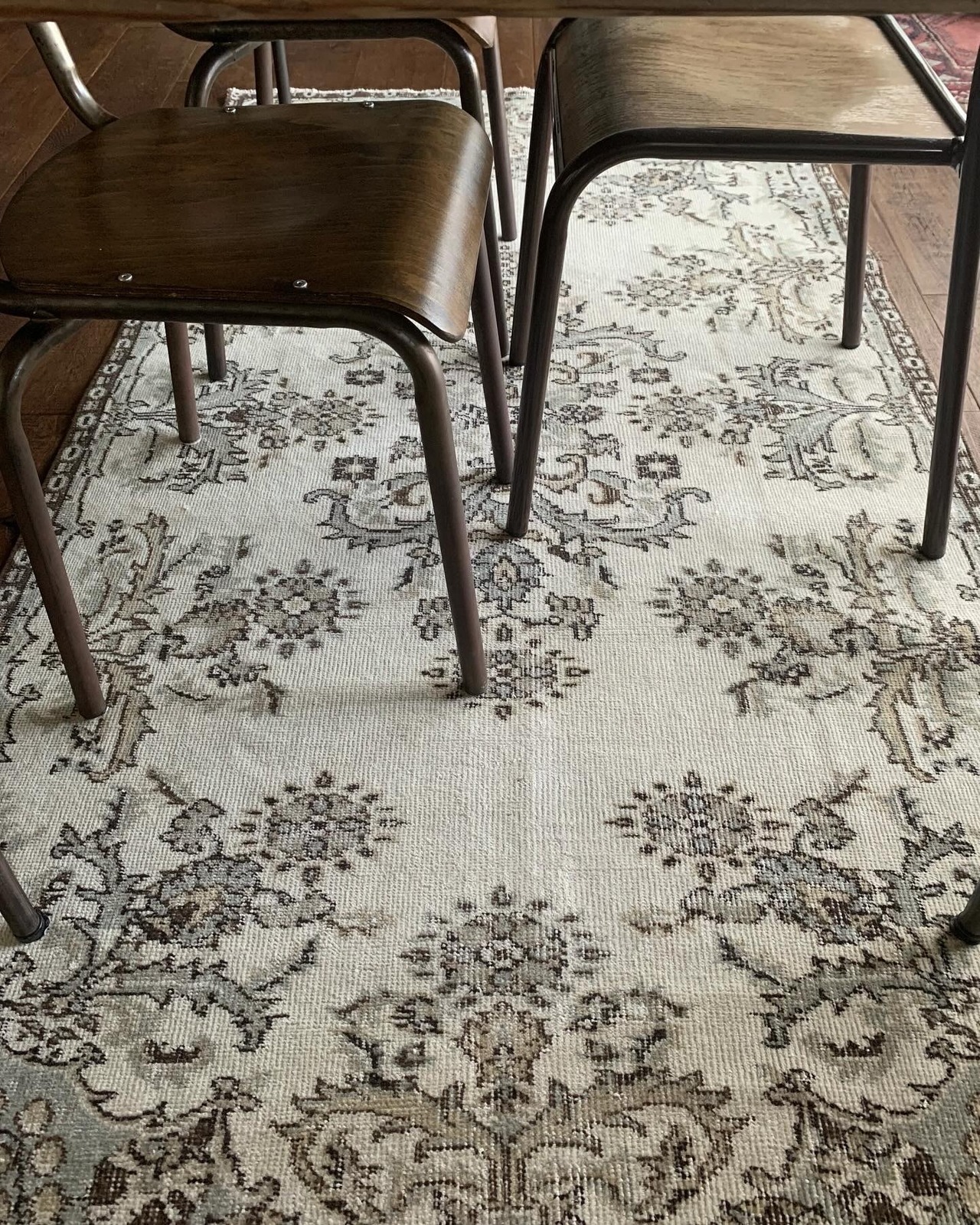✔︎手織りのヴィンテージラグの為、撓み、カスレ,糸の飛び出し修復などありますがどれもヴィンテージならではの風合いです。