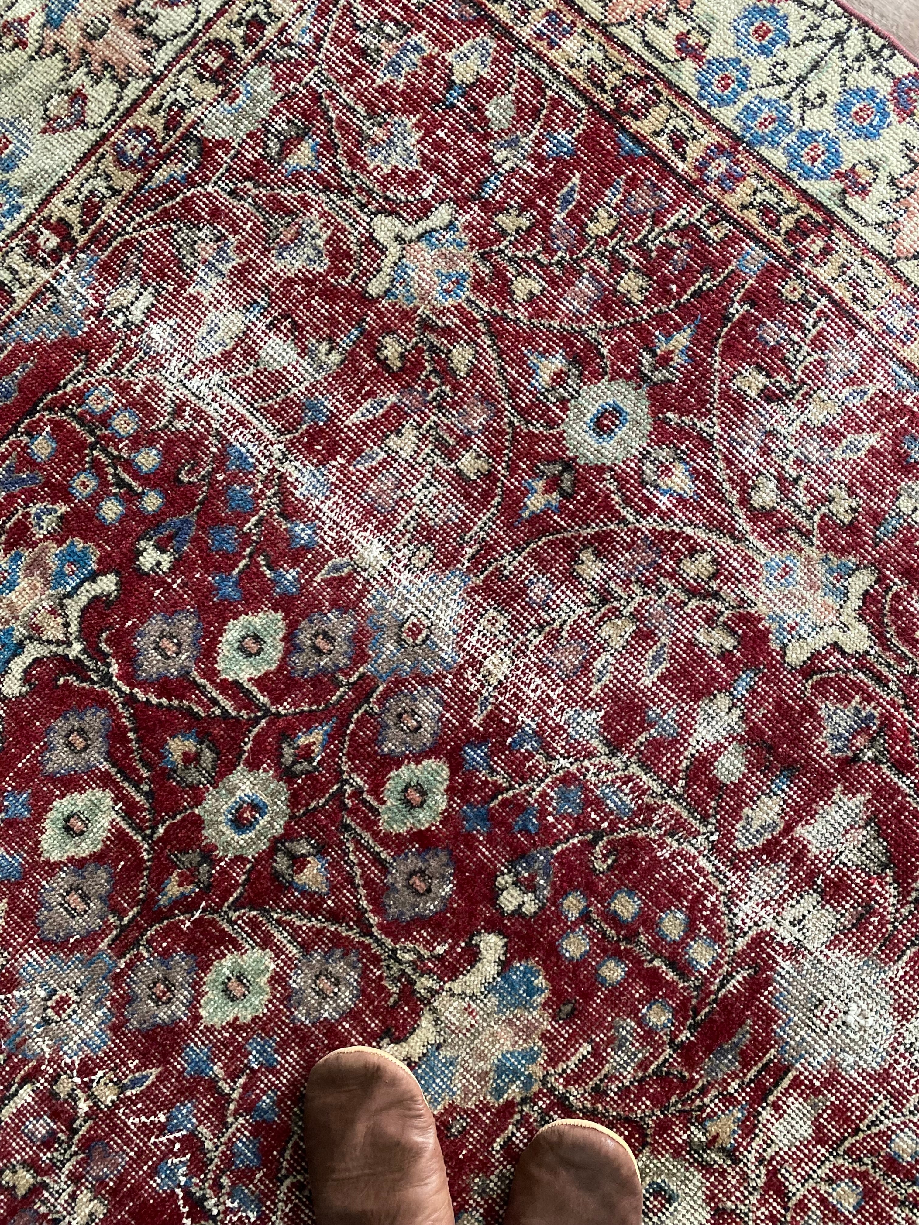 ✔︎ 入荷後天日干し、水拭き、掃除機を数回かけておりますがどうしても細かな砂が出てくる場合がございます。砂の多い国で土足文化の為、洗浄しても中に入り込んだ砂が出てきます。敷いたラグ下をたまに掃除機をかけて頂くと気にならなくなります。